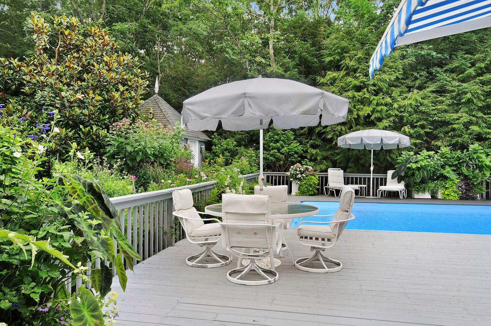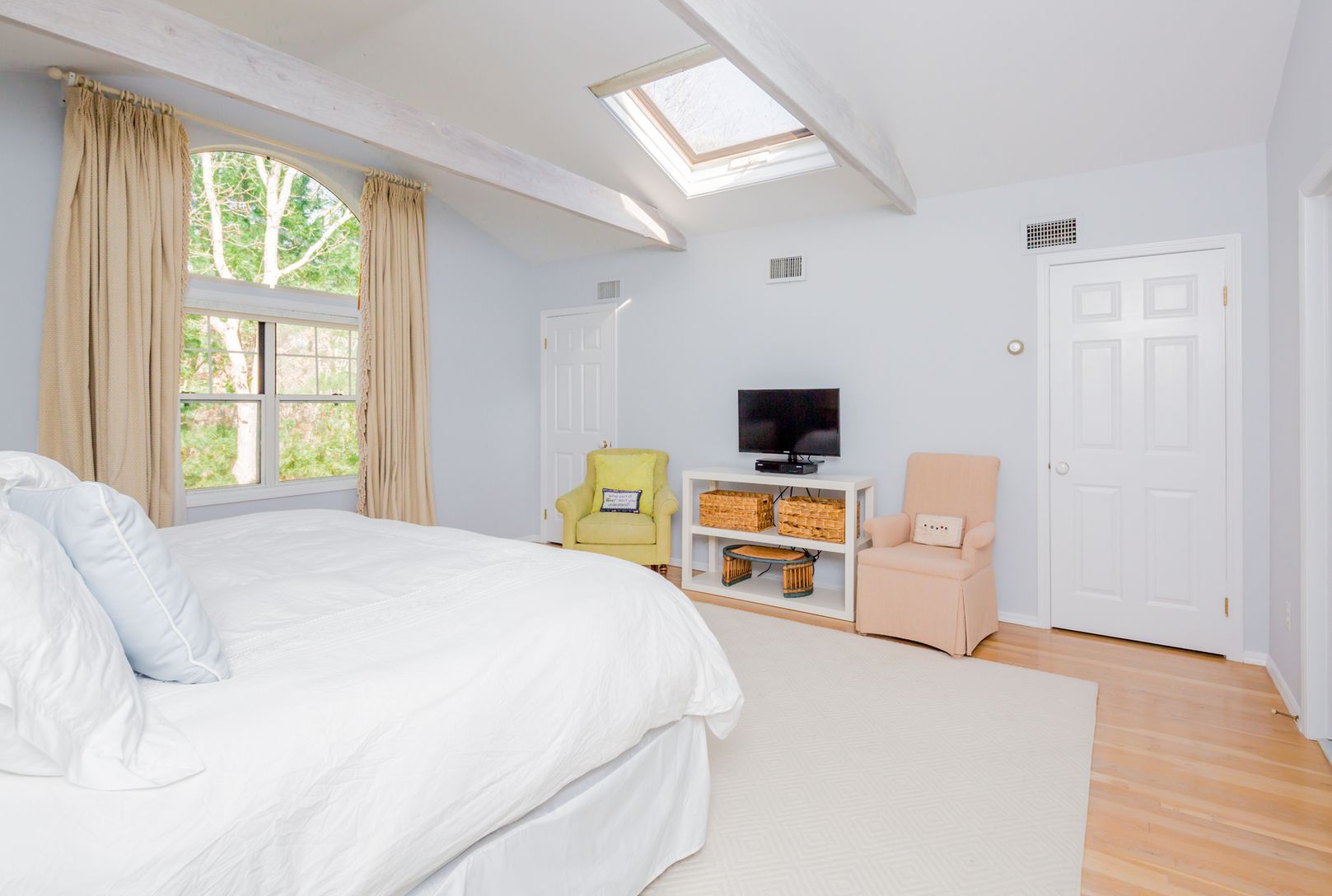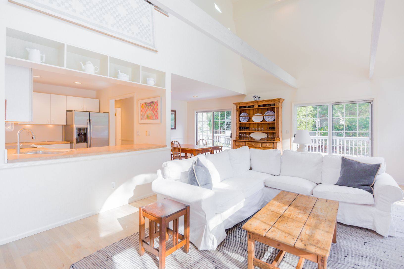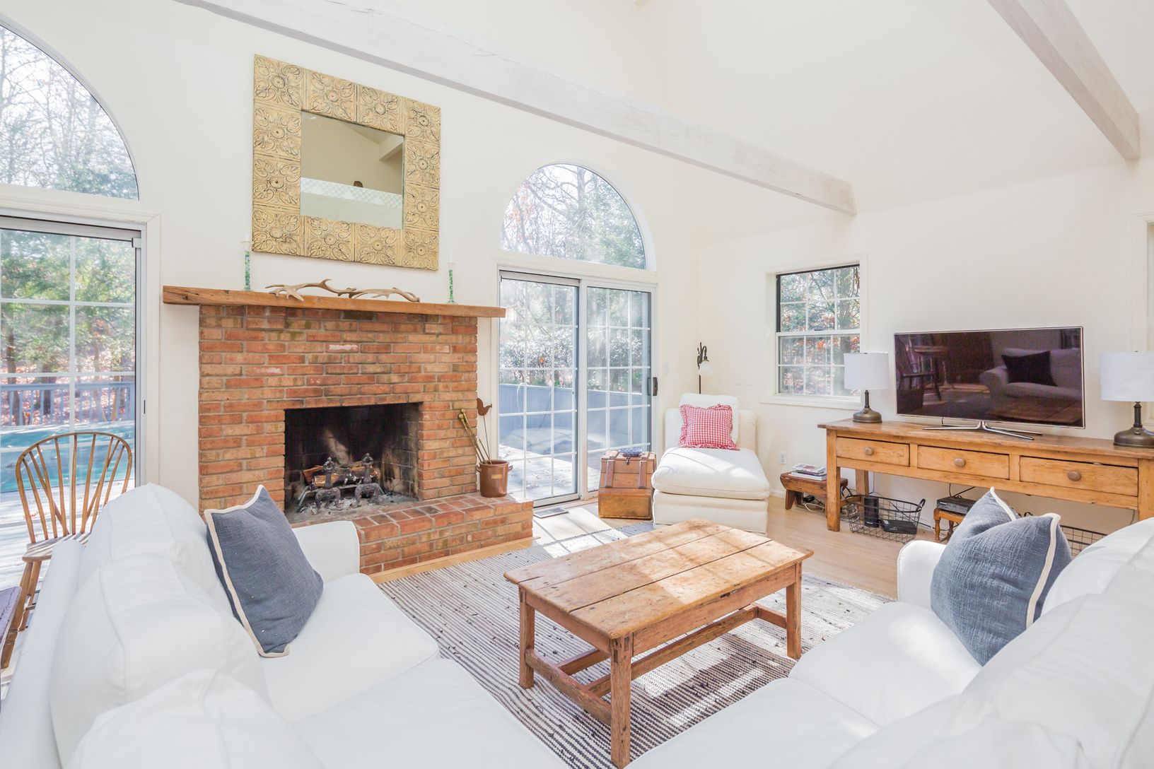 This postmodern contemporary is located in Sagaponack North, and is minutes by car to uncrowded ocean beaches and Bridgehampton & Sag Harbor villages. Large south and west-facing windows, coupled with many sliding doors accessing the wrap around deck, bring natural light into the vaulted ceiling, open plan living, dining, and kitchen great room. A wood burning fireplace rounds out the great room. Two guest bedrooms and a full bath comple