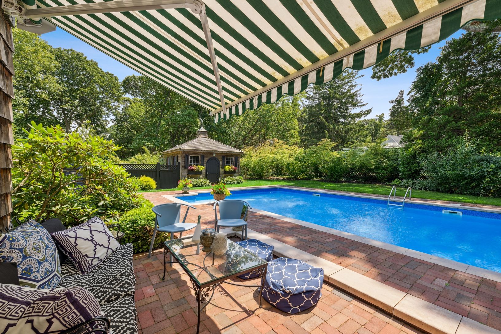 This Hampton escape is located just across the street from picturesque Wooley's Pond and a block from the sandy Peconic Bay private beach. it will be perfect for everyday living or summers and weekends all year long. Once a traditional "Oliver Beach Cottage" this property has been transformed!. It now includes 5 cozy bedrooms and 3 full baths, two living rooms with fireplaces, a dining area, and an eat in kitchen. Outside you have a heated po