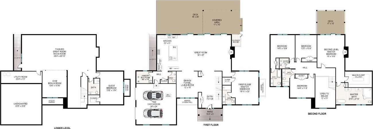 Bonus room, Exercise room, Family room/den, Great room, In-law suite/private guest quarters, Laundry room, Media room, Office, Study