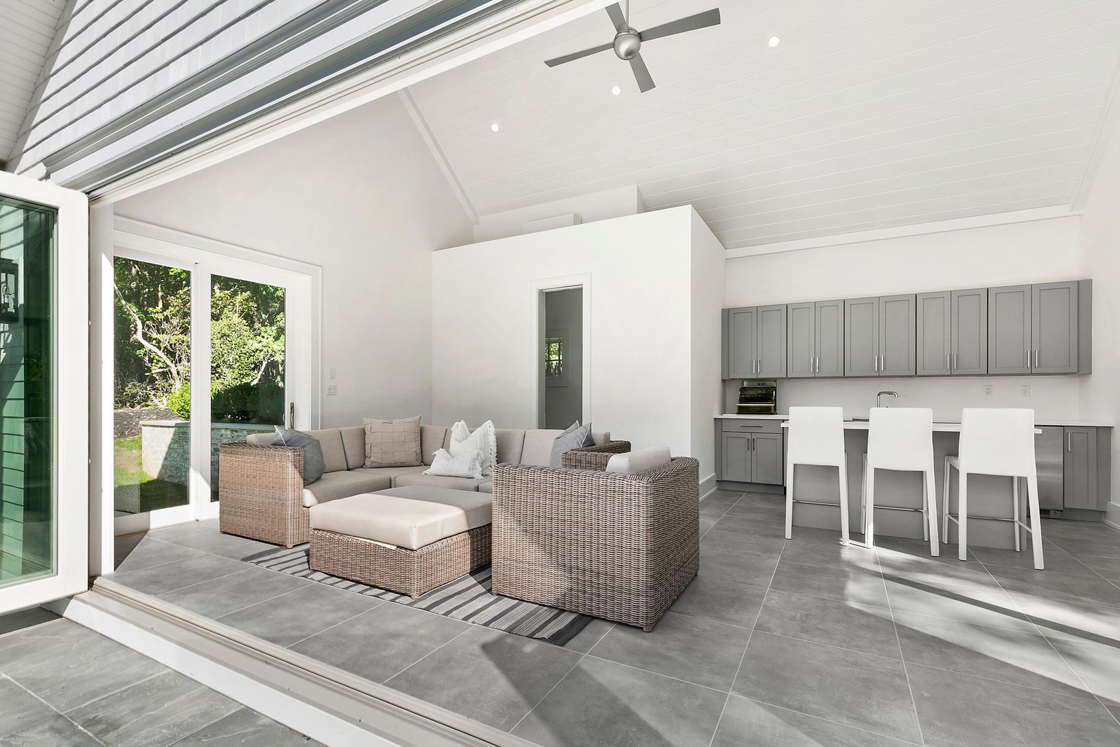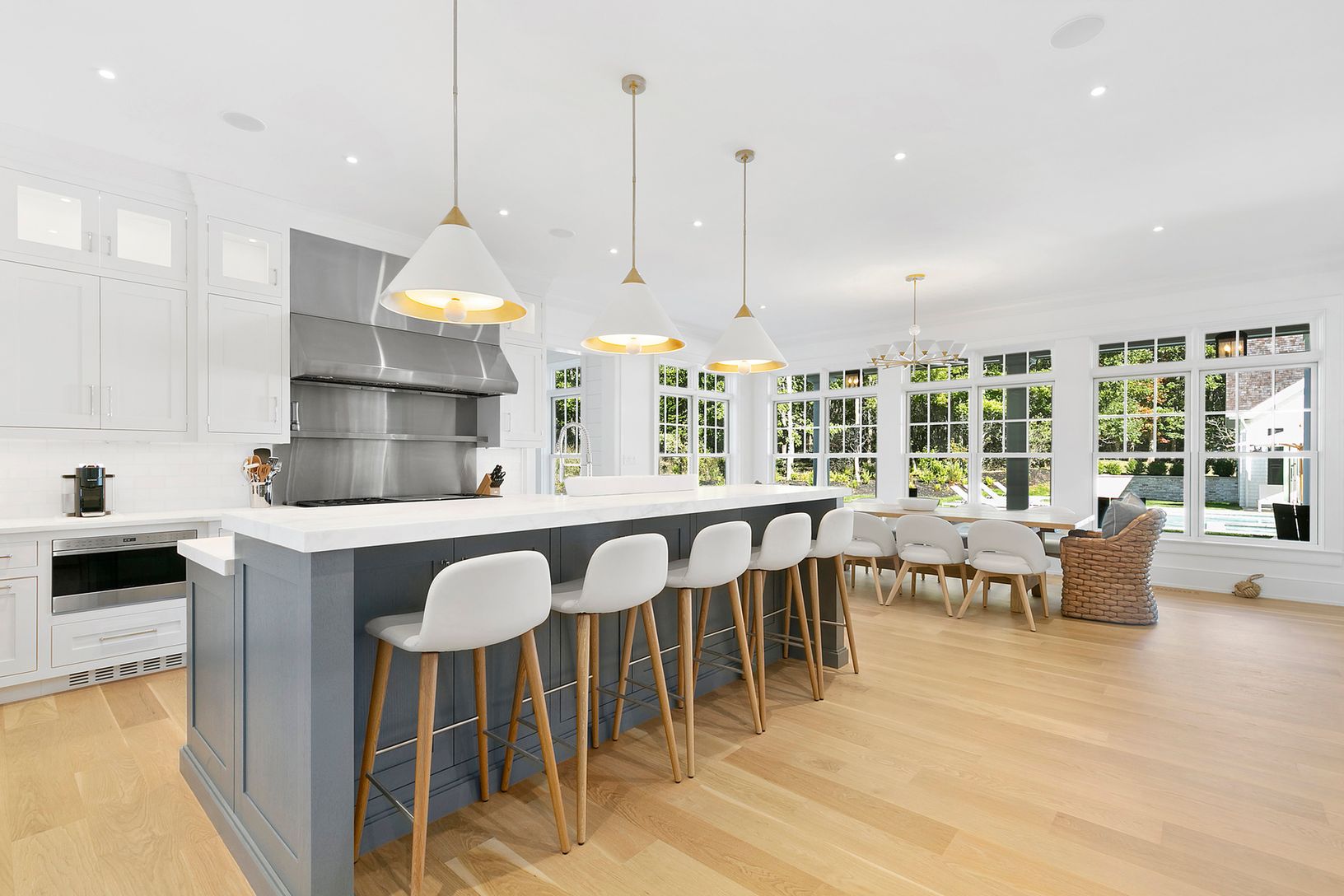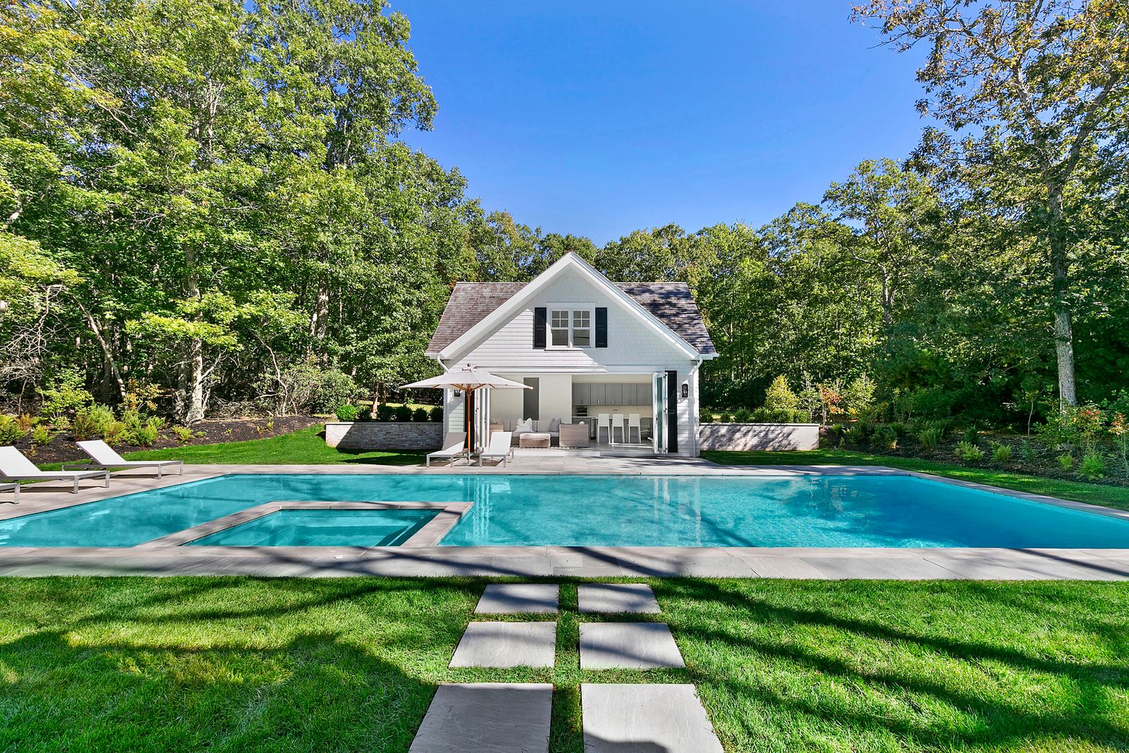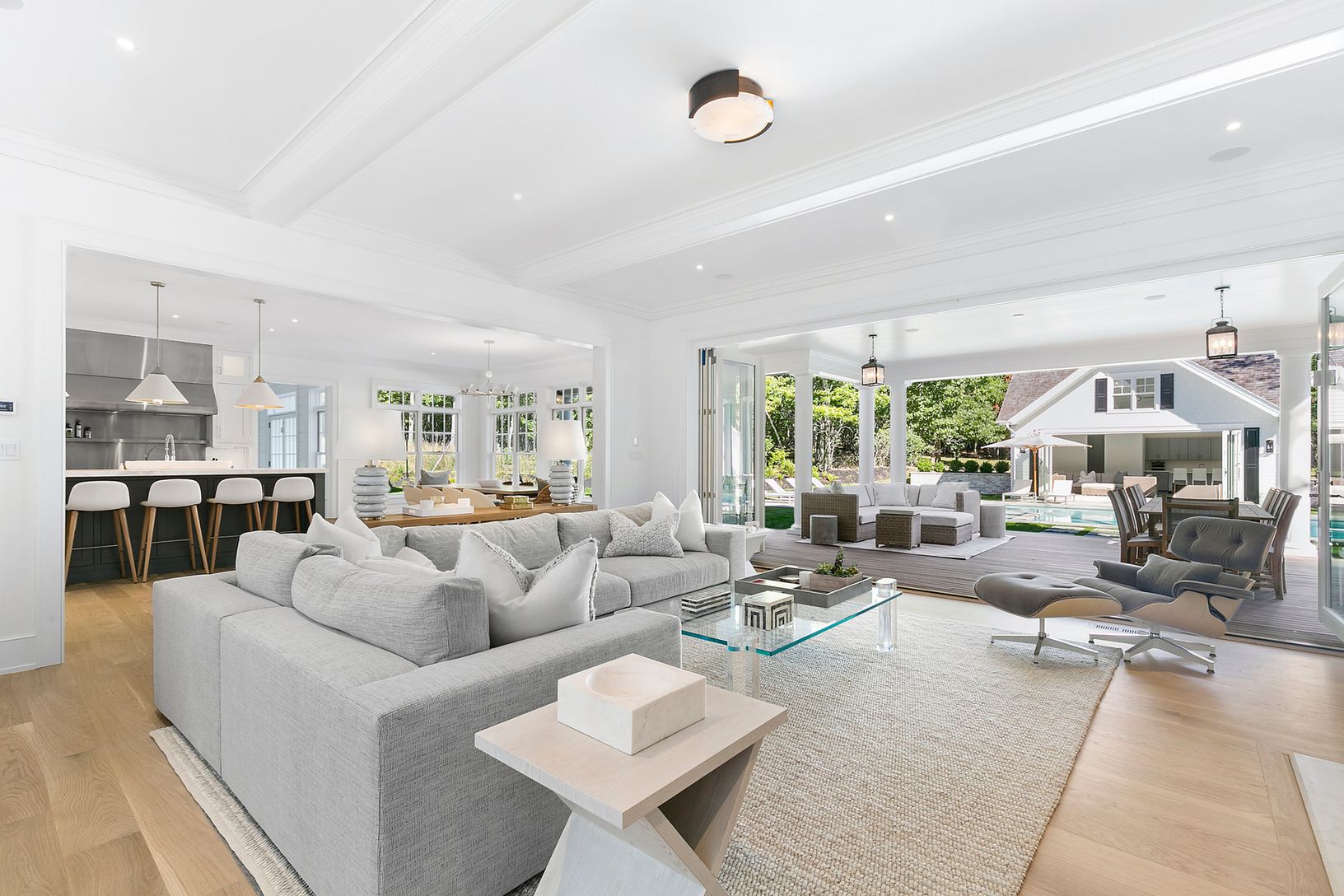 Stunning new transitional home, magnificently designed by Jason Thomas Architects of Southampton, with almost 10,000 sq feet of living space, great for entertaining. Traditional exterior and gorgeous modern interiors. Includes eight ensuite bedrooms and every amenity for modern living. On almost 2 private acres, this is a truly quiet Hamptons location on a country lane, with no traffic, yet centrally located only a few minutes from the towns