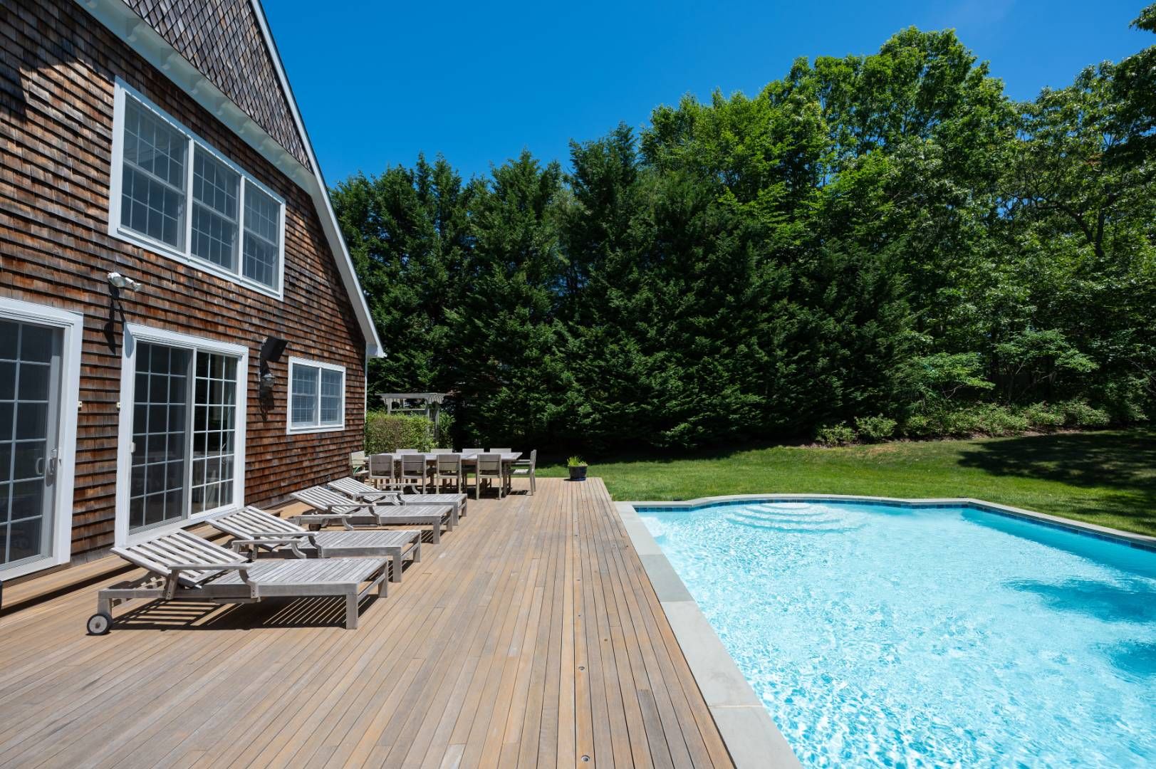Beautiful post modern with pristine interiors, double height living room, large dining, five beds, five baths, a finished lower level and all on a quiet cul-de-sac. Set on a full acre with heated pool, hot tub, swing set and plenty of lawn to enjoy makes this a perfect rental. Only minutes from Southampton Village and ocean beaches. Owner's will do a mid July to mid August rental.