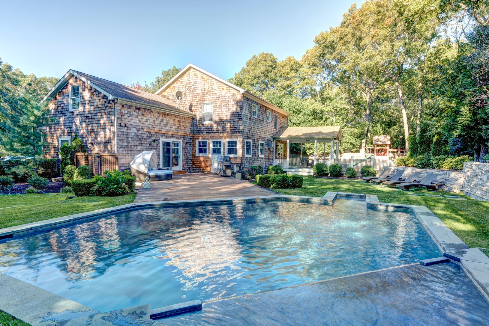 With a design team overlooking every last detail in this recently renovated traditional, you know comfort and style go hand in hand. This smashing 3000 sq ft shingled traditional has had more recent upgrades than we can count. The feeling throughout the house is bright and inviting. All fresh interiors, the new kitchen overlooks the pool area, with custom cabinetry and professional Wolff and subzero appliances, white Caesarstone countertops wi