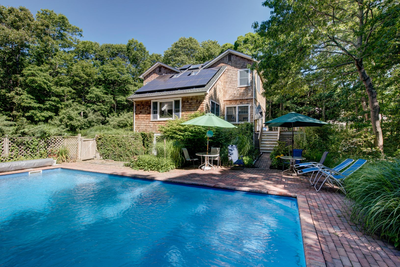 This lovely shingled traditional sits on a shy acre in a desirable Water Mill area surrounded by multi-million dollar homes. Situated on a cul-de-sac, it offers a quiet, peaceful location yet is within easy reach of surrounding villages and beaches. The spacious interior was smartly designed for maximum living space. It offers four bedrooms and three and a half baths, including master suites on both the first and second floors, plus a light-fi