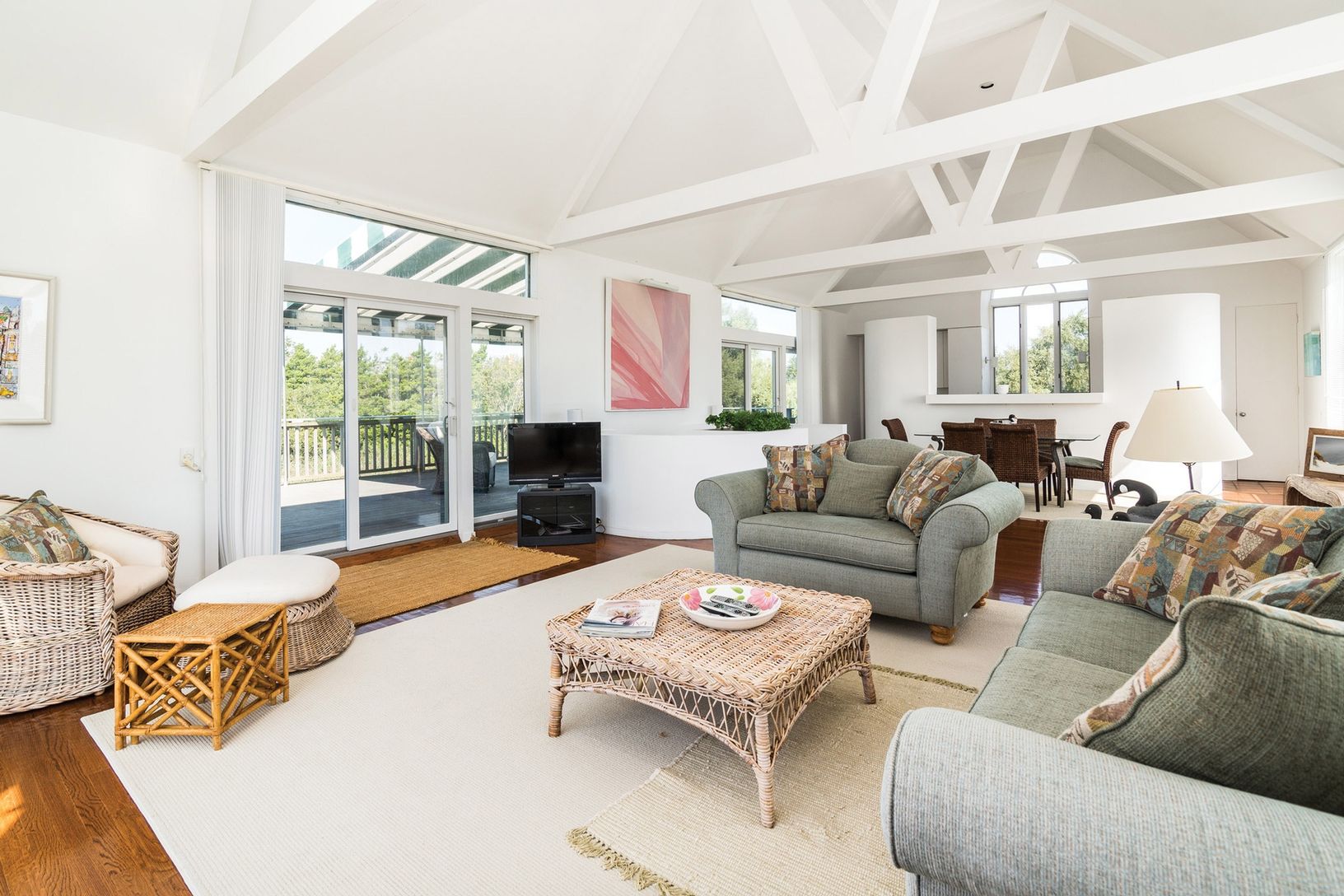 In one of the quietest cul-de-sac neighborhoods in the Hamptons, where there is practically no traffic even in summer, this upside down home on a builder's acre presents a variety of possibilities. The open, sunny property is 100% cleared, with expansive lawn areas and high perimeter hedging and plants providing privacy. Well maintained and entirely livable as is, live here while you consider renovation and expansion or plan your new dream hom