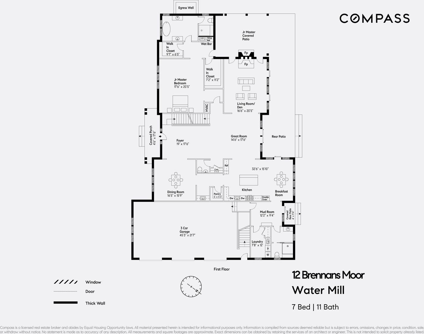 Located on a private Water Mill South cul de sac and just completed in 2020, this 7 bedroom 12 bathroom 9,286 square foot home with 3 full levels of living space, set on 1 acre and includes three car garage, heated gunite pool and hot tub/spa. The home was designed to masterfully blend a traditional Hamptons exterior with a open and modern interior floor plan which provides seamless indoor/outdoor living. This design is pillared by the first f