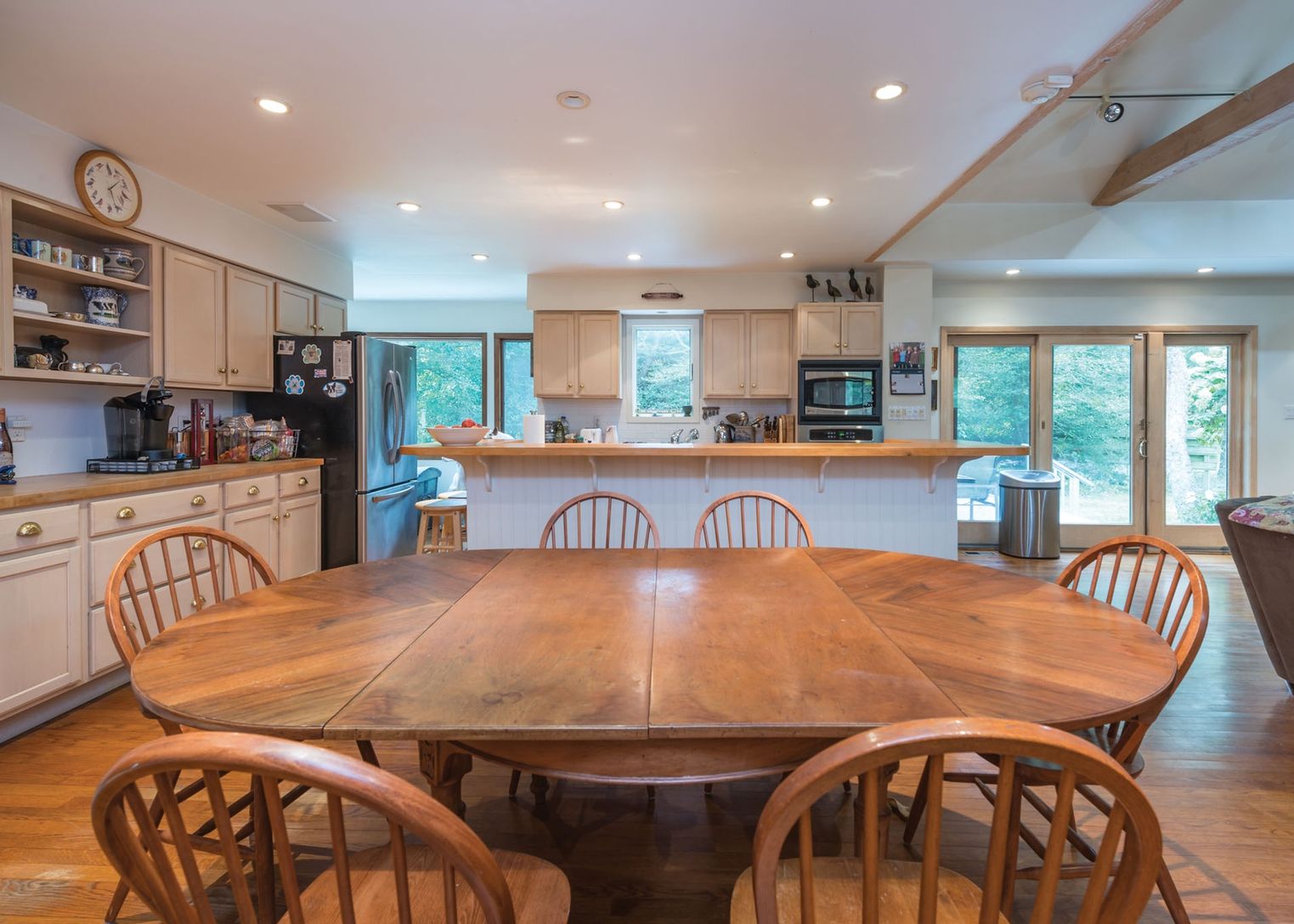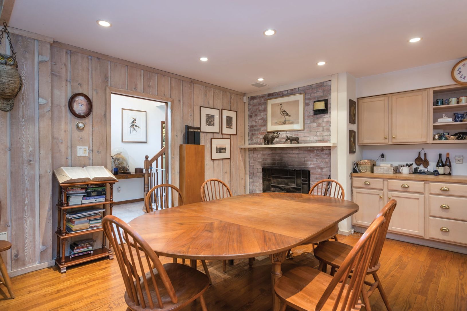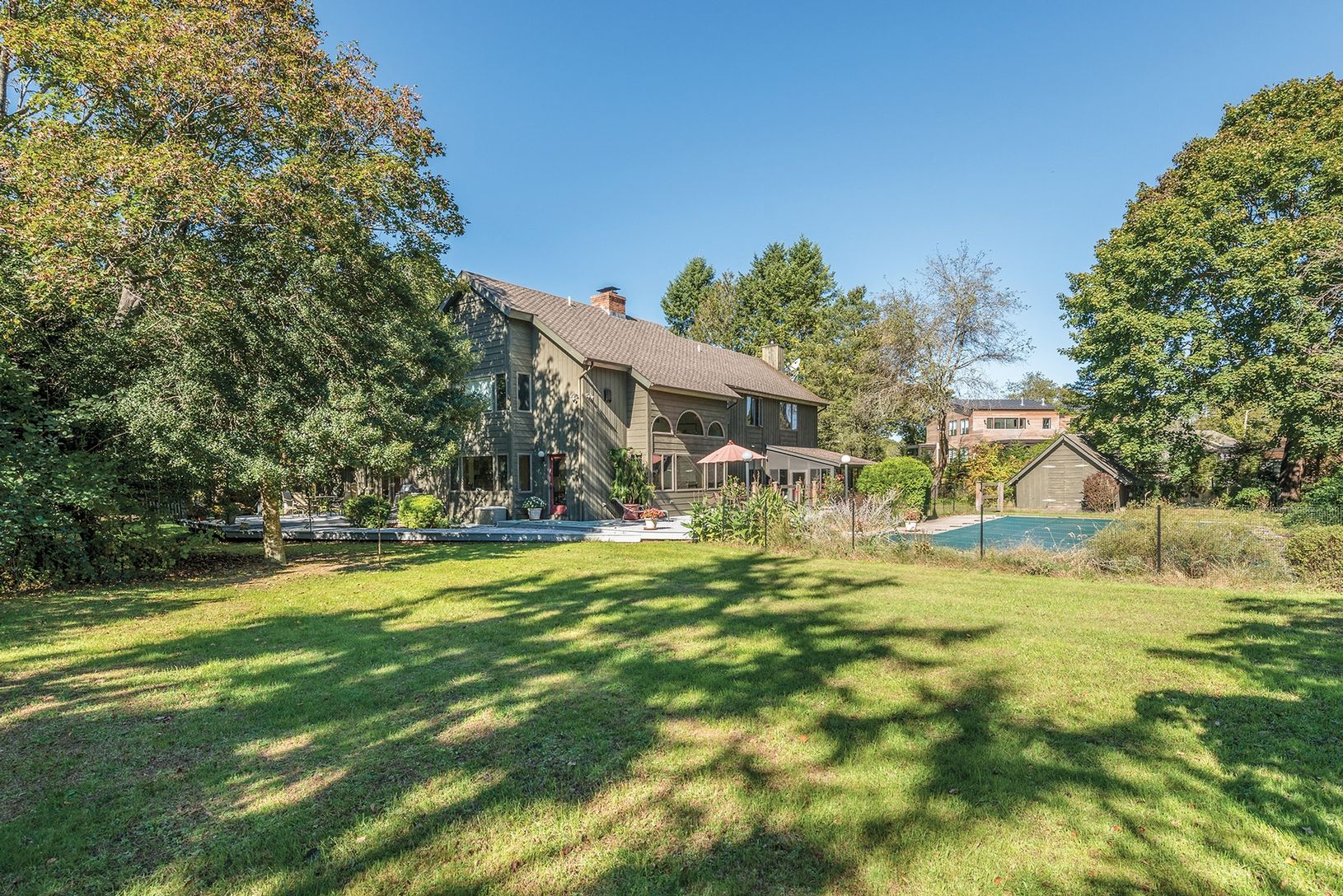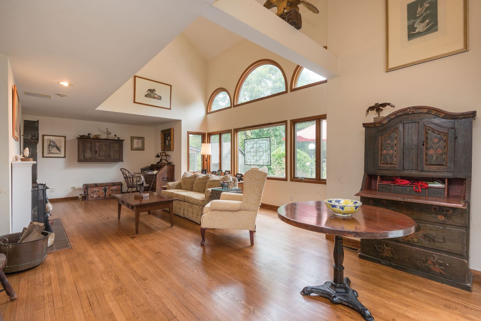 Country meets contemporary in this architecturally unique 3,600 +/- sq. ft. home located on one of the most desirable streets in bucolic Remsenburg. Highlights include a first floor master with screened porch; spacious rooms with soaring ceilings, rustic beams and clerestory windows; and a huge kitchen/great room with wood-burning fireplace and rough-hewn wood walls. There's also an open living room with fireplace, library with walls of bookca