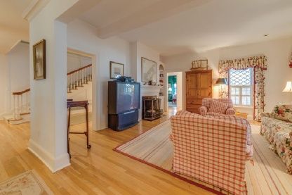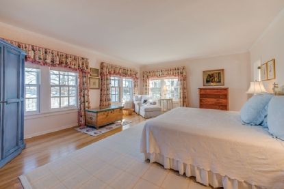 Built in 1925, this breathtaking gated compound sits on 1.73+/- acres fronting Dering Harbor in the heart of Shelter Island Heights. The first floor of the main house has a living room, formal dining room, kitchen, breakfast area and prep room. On the same floor are a family room, library and laundry room, as well as several covered outdoor porches overlooking the lawns and dock. Upstairs are four bedrooms, including a master suite and adjoini