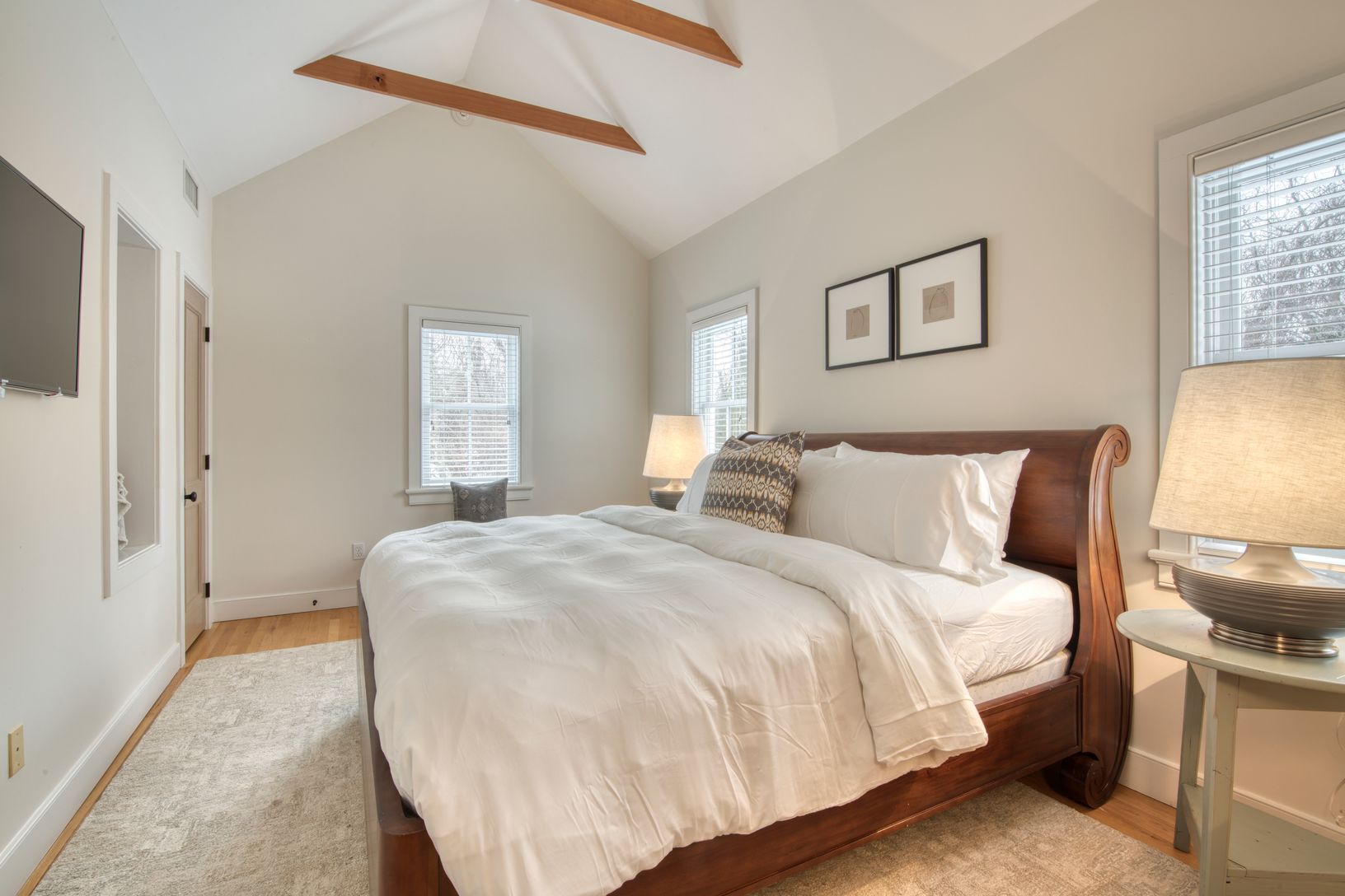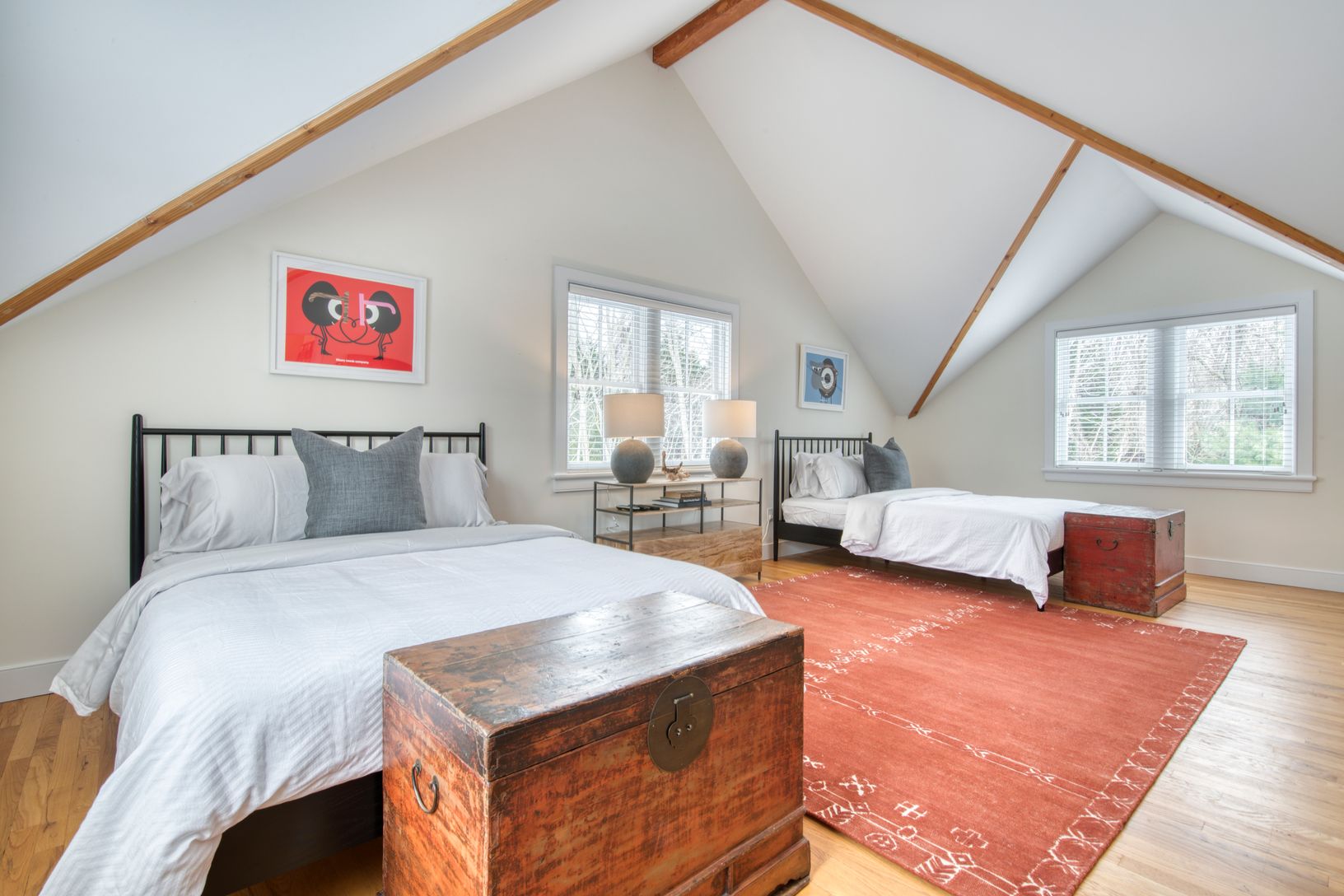 This meticulously maintained traditional farmhouse just completed a renovation and is the perfect summer rental. Brand new to the rental market, perfectly decorated and located on 1.8 private acres. The first floor features a grand living room with double height ceilings, a newly renovated kitchen, dining area, and an en suite guest room with fireplace. The second floor contains a master suite and two additional guest rooms that share a bath.