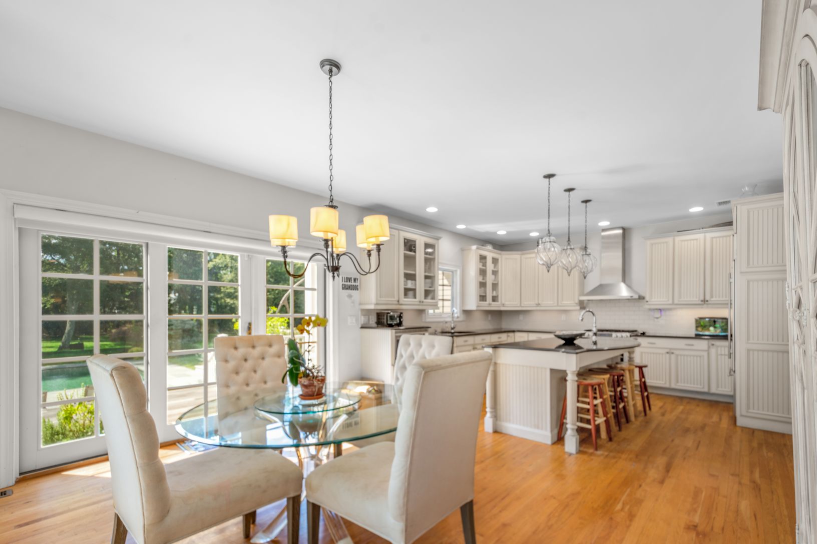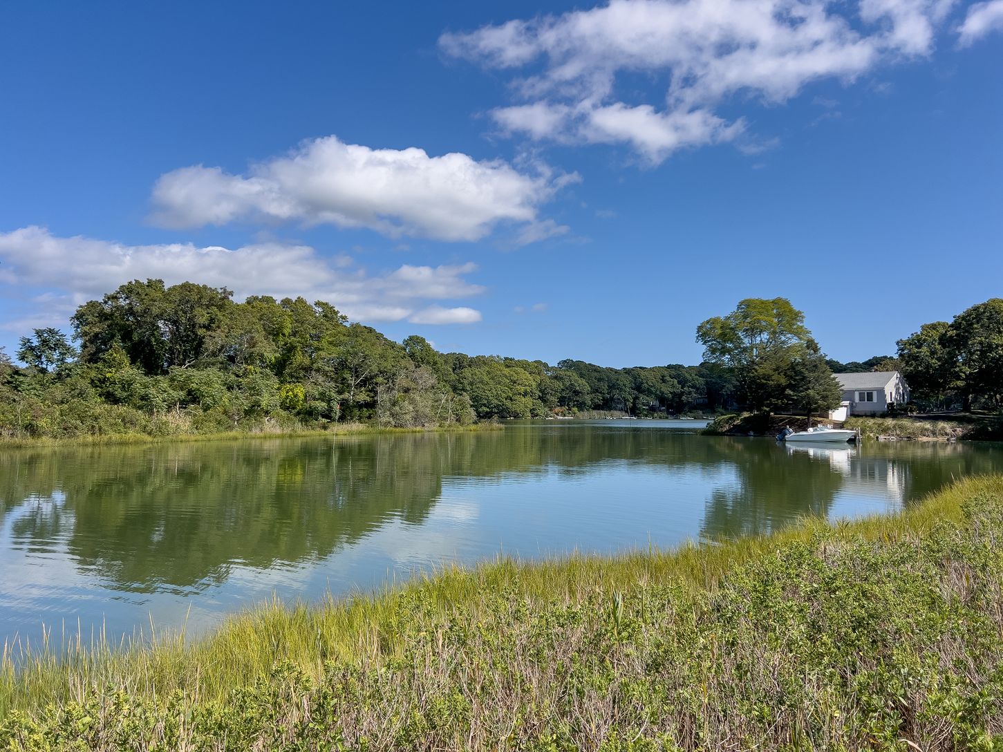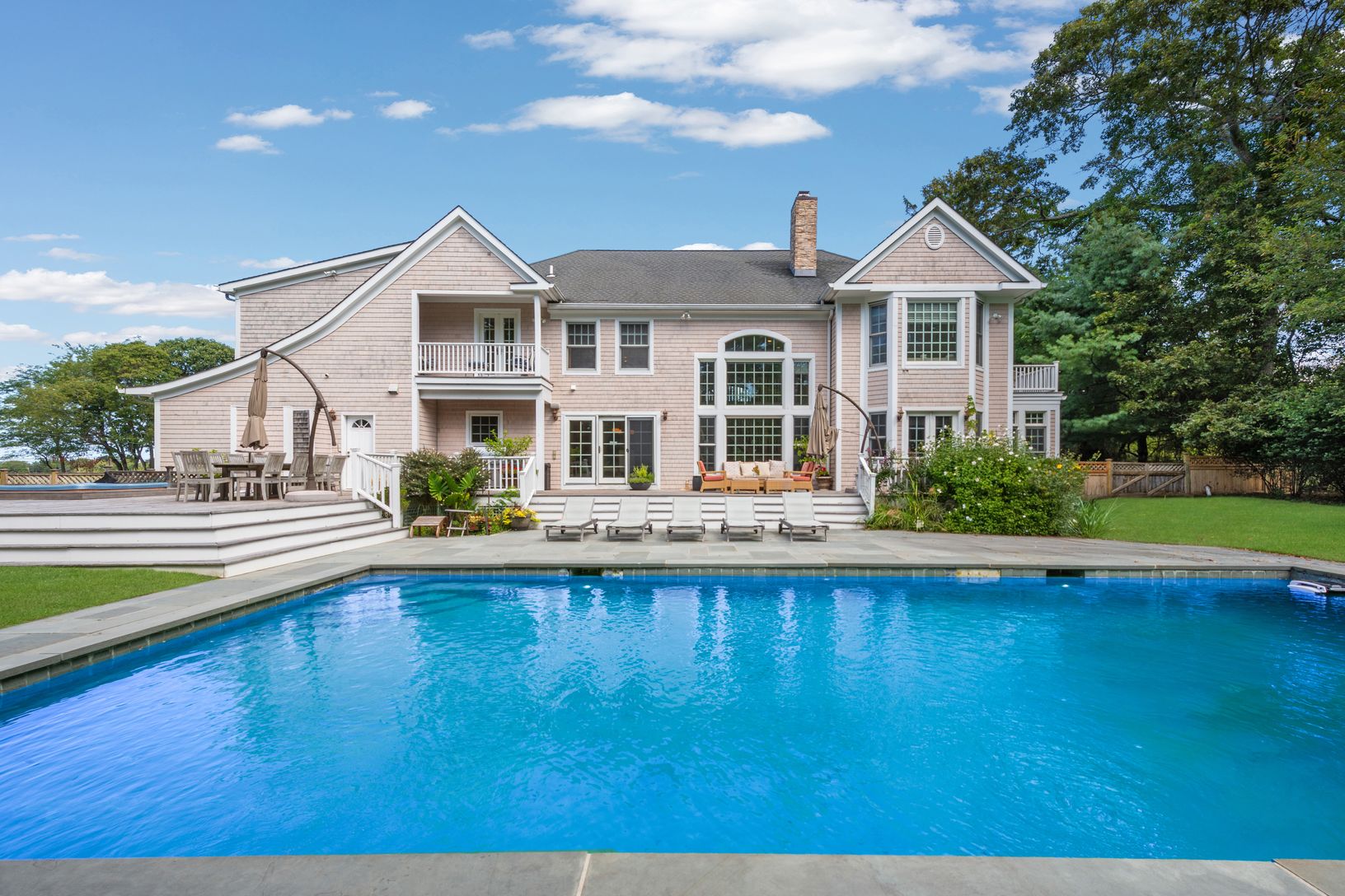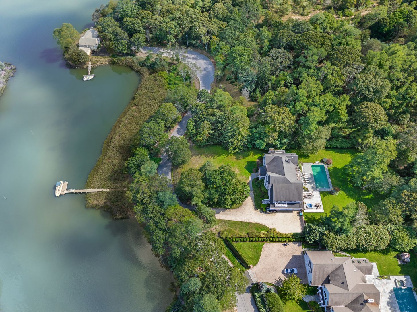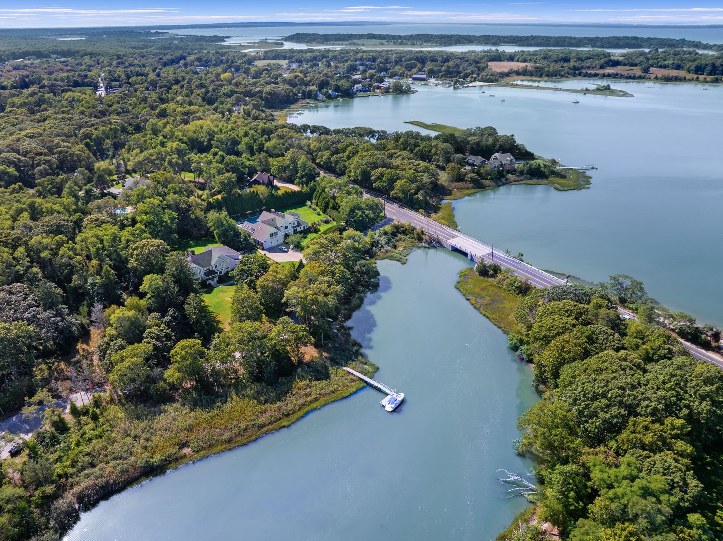 Built in 2005 and gracefully sited on 1.18 acres overlooking North Sea Harbor's peaceful Fisch Cove, this 5,100± sq. ft. residence captures the essence of Hamptons waterfront living. Expansive glass windows and French doors fill the interiors with natural light and frame serene harbor views from nearly every room. The main level offers a gracious entry foyer, a generous kitchen with premium appliances, and open dining and living areas designed