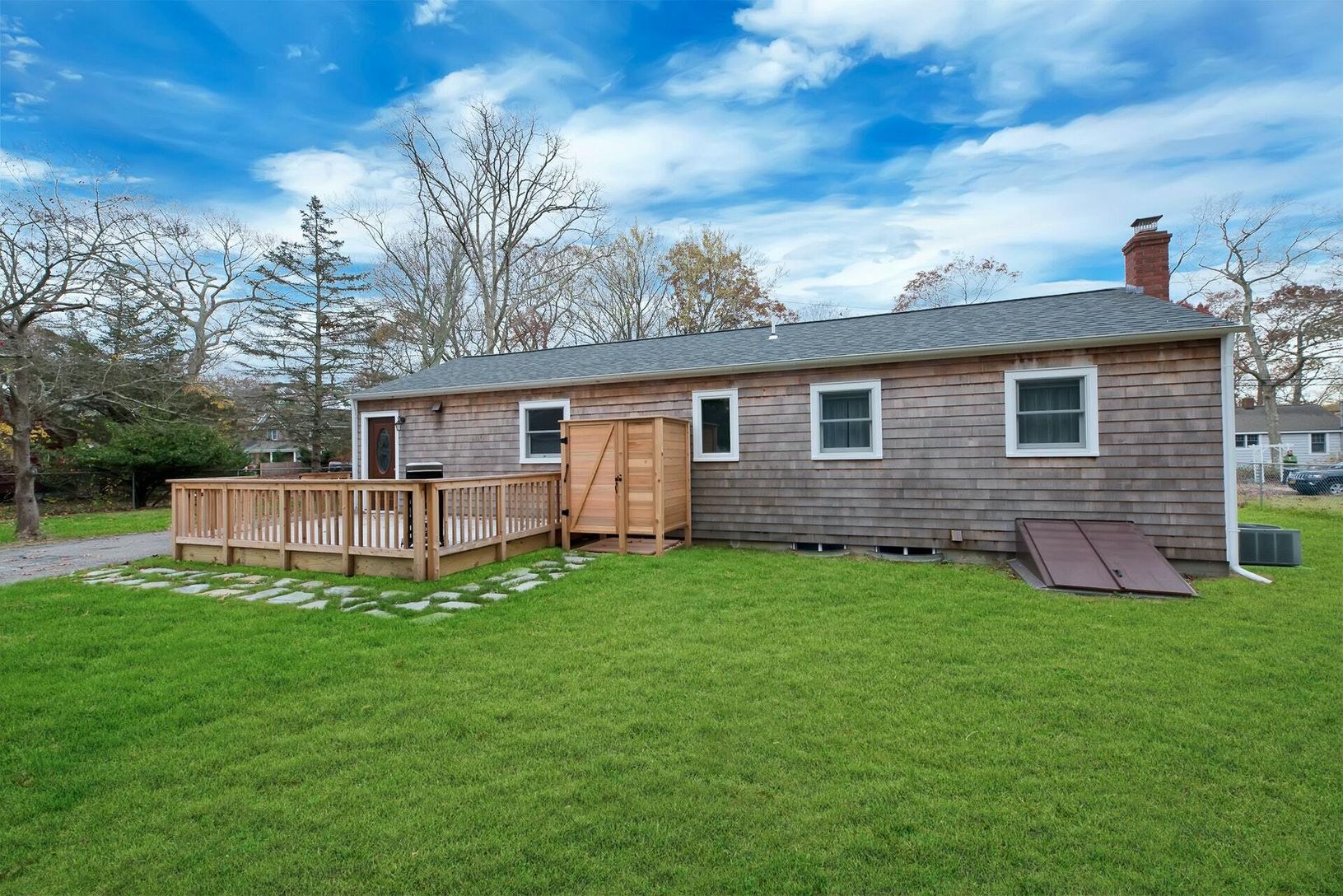 Completely updated ranch inside and out. Beautifully appointed with two bedrooms, one bath, living room, large eat in kitchen, den with murphy bed for your guests. Move in ready. Close to bay beaches and centrally located between Riverhead and Hampton Bays. Very convenient location for all your needs.