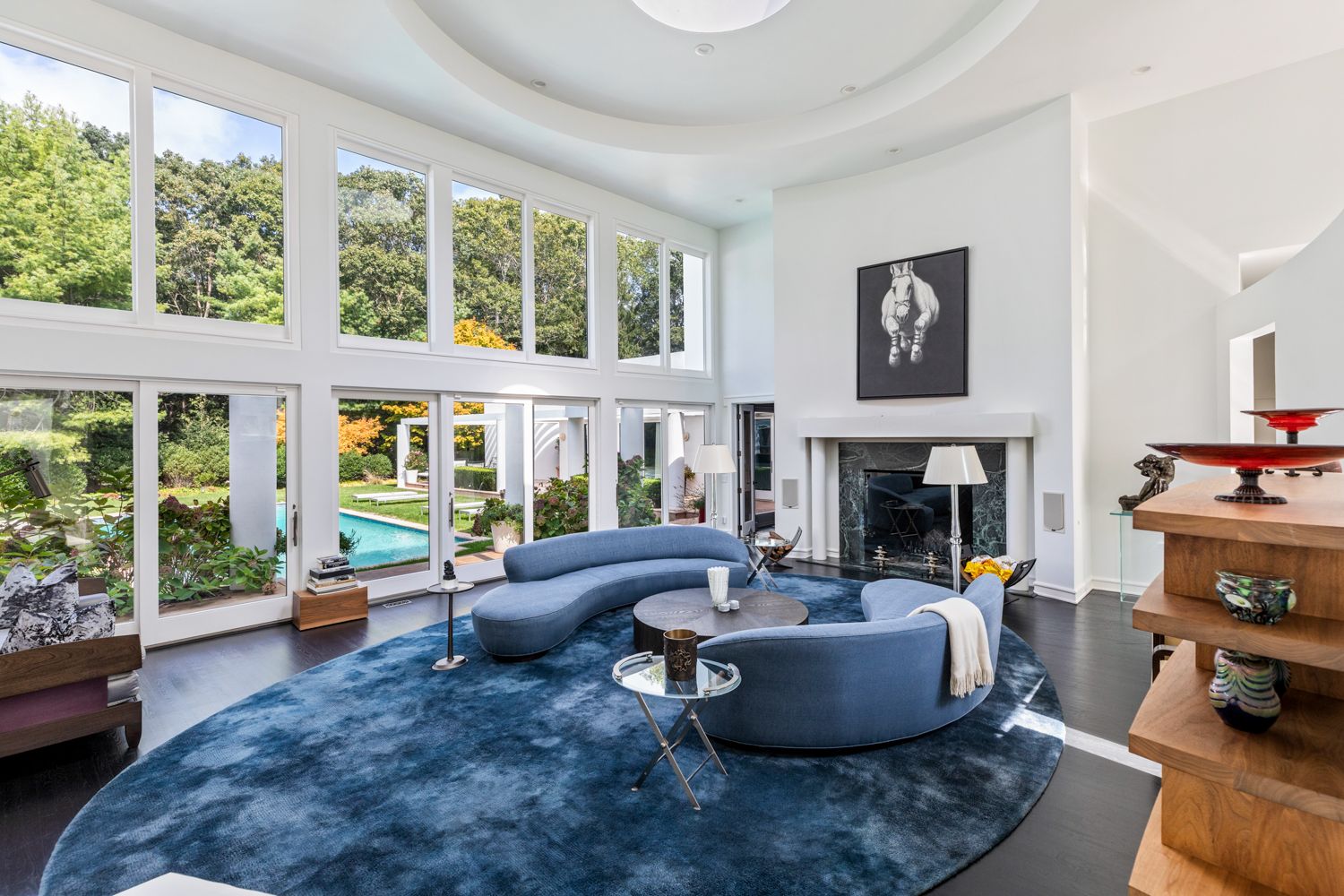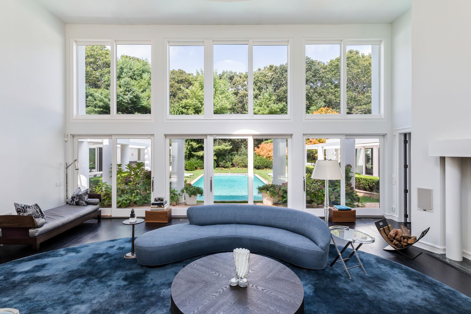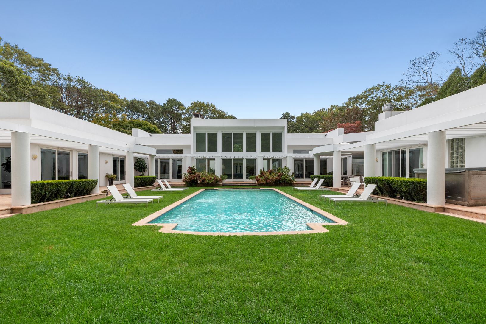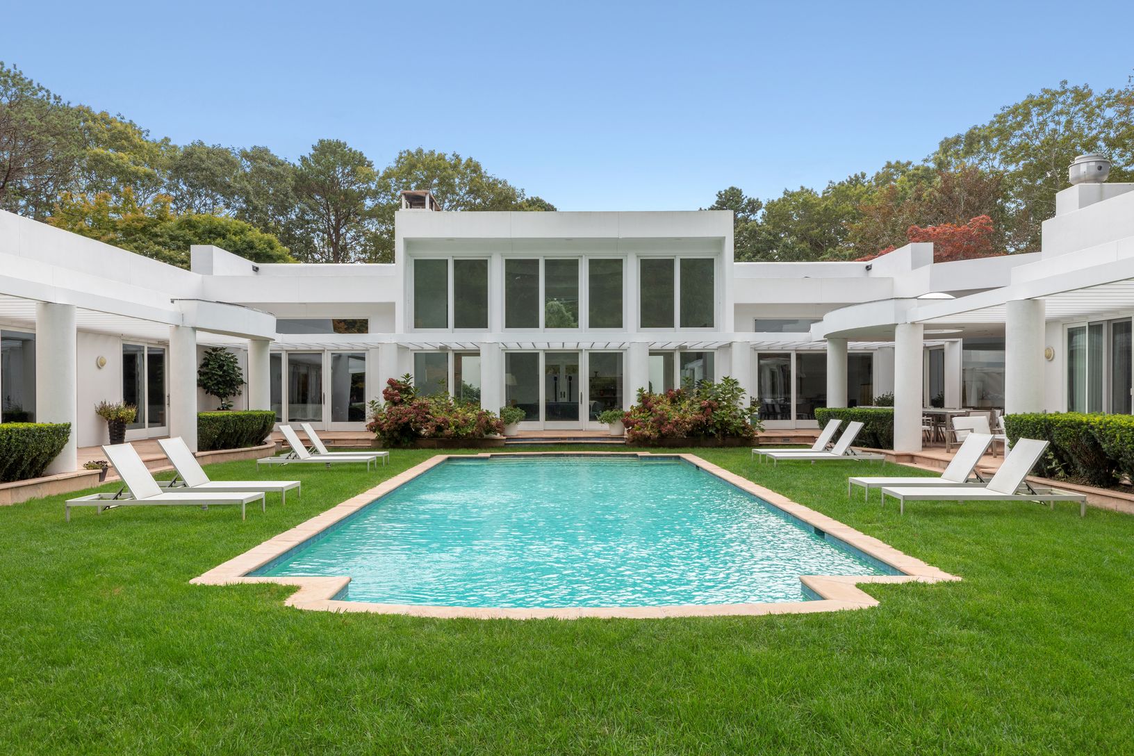 This exclusive estate is a striking statement of modern design, where soaring scale meets ultimate privacy. A true architectural rarity, it may well be the most distinctive mid-century modern home in the Hamptons.