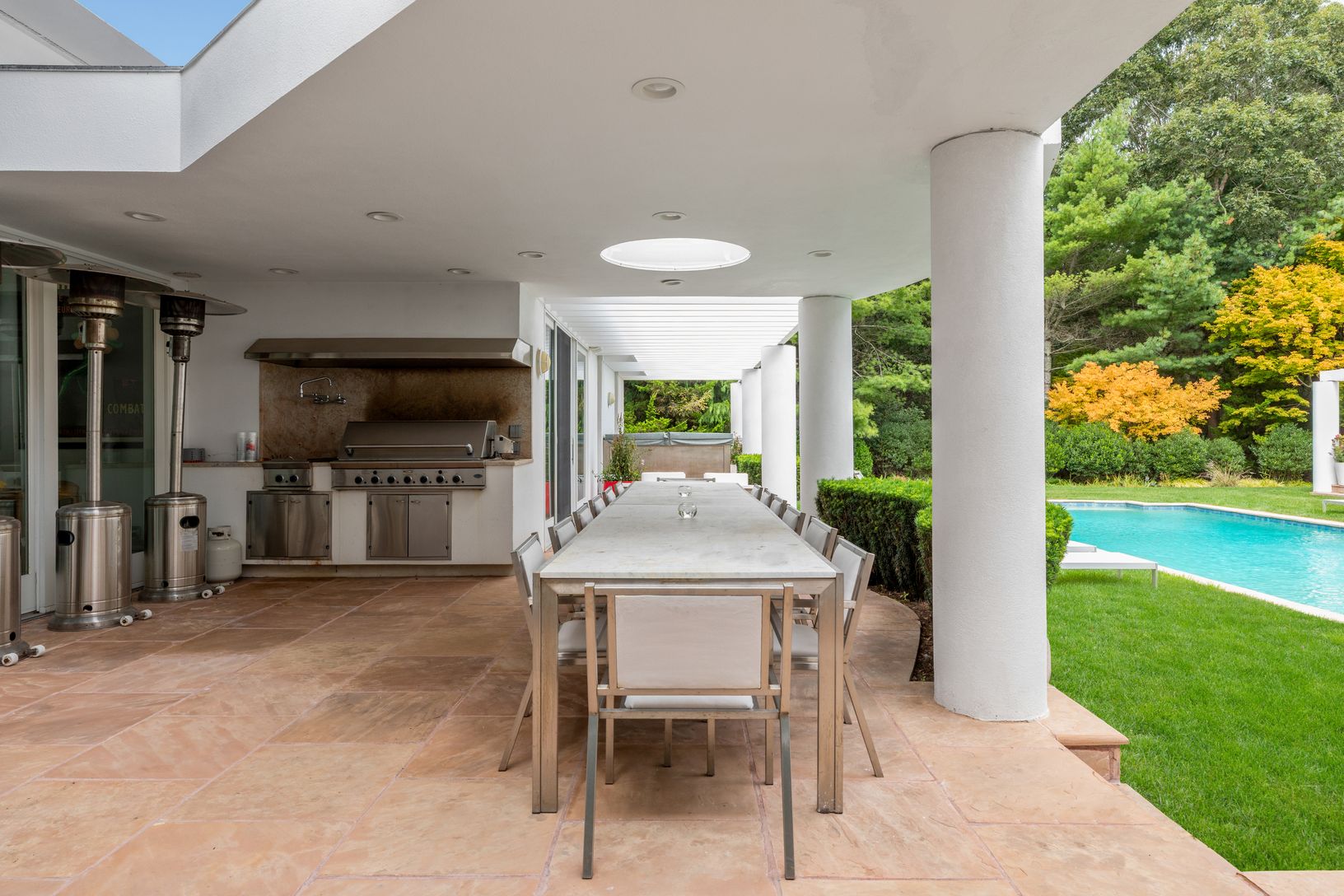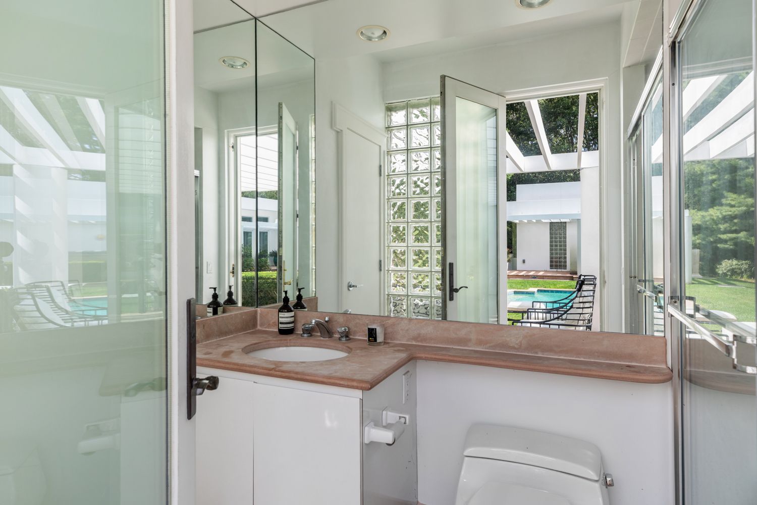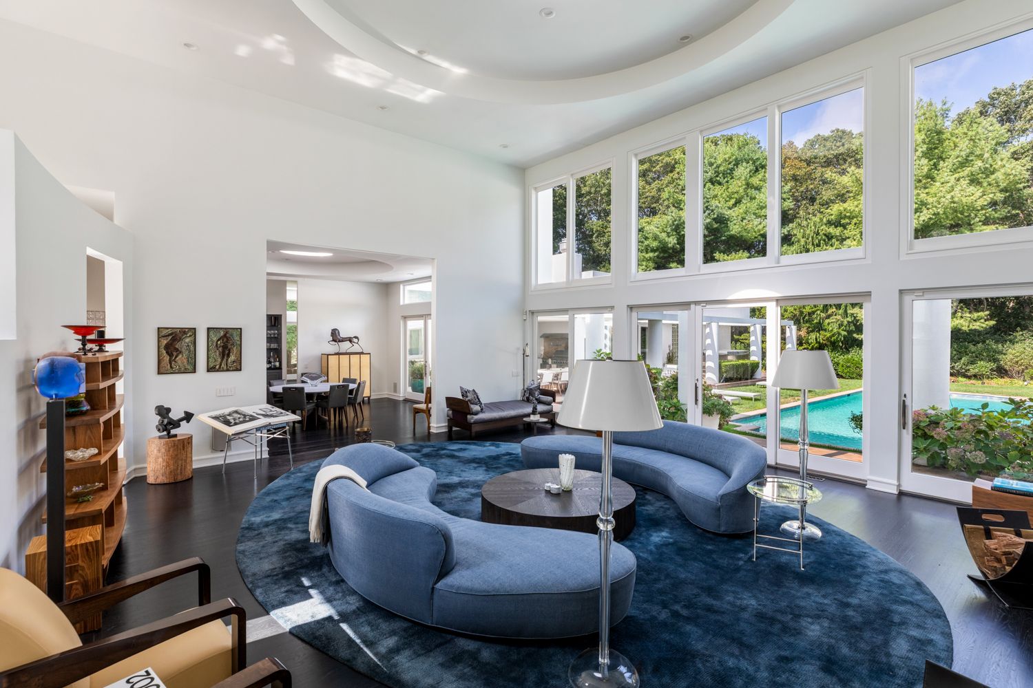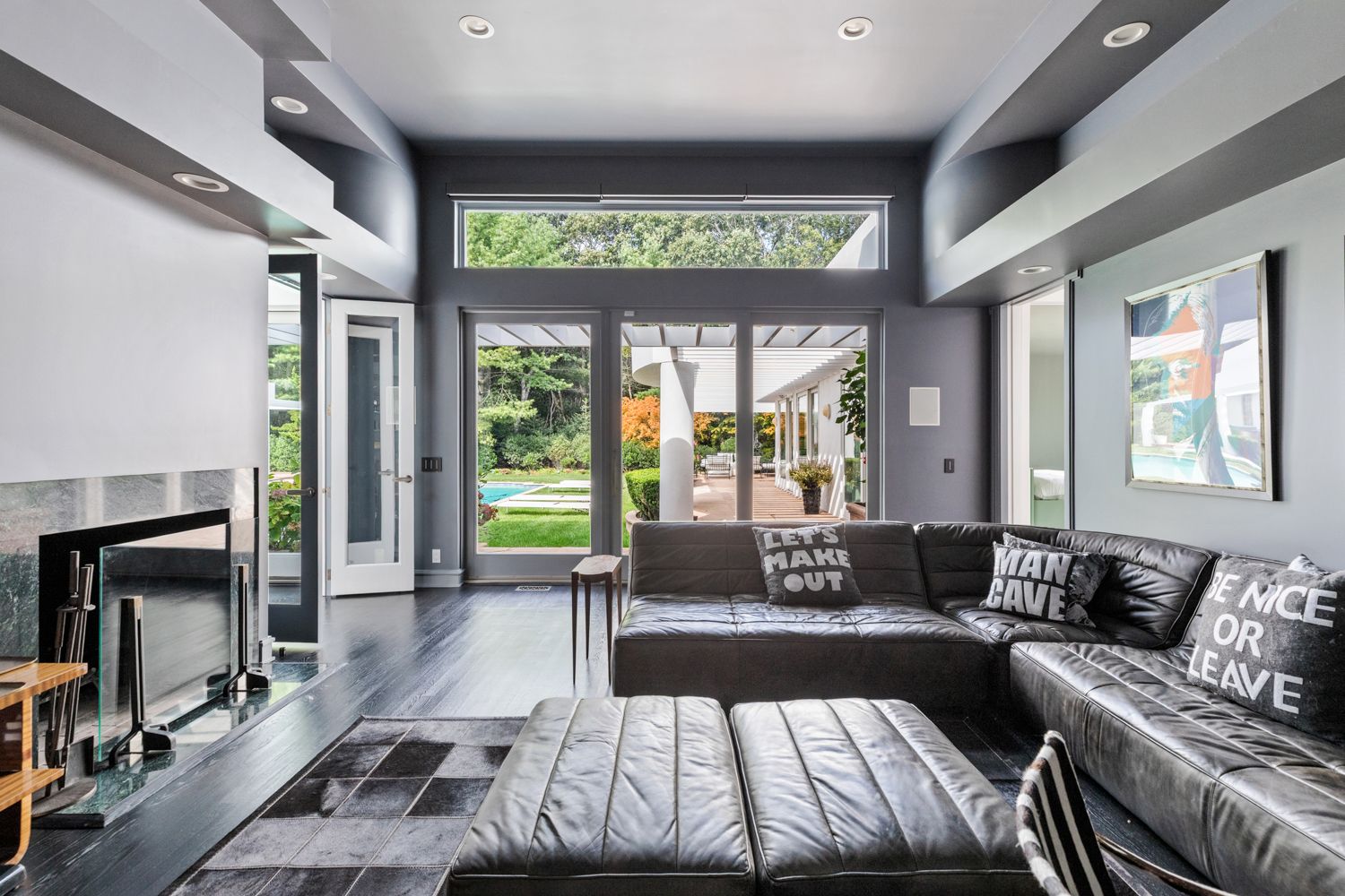 This exclusive estate is a striking statement of modern design, where soaring scale meets ultimate privacy. A true architectural rarity, it may well be the most distinctive mid-century modern home in the Hamptons.