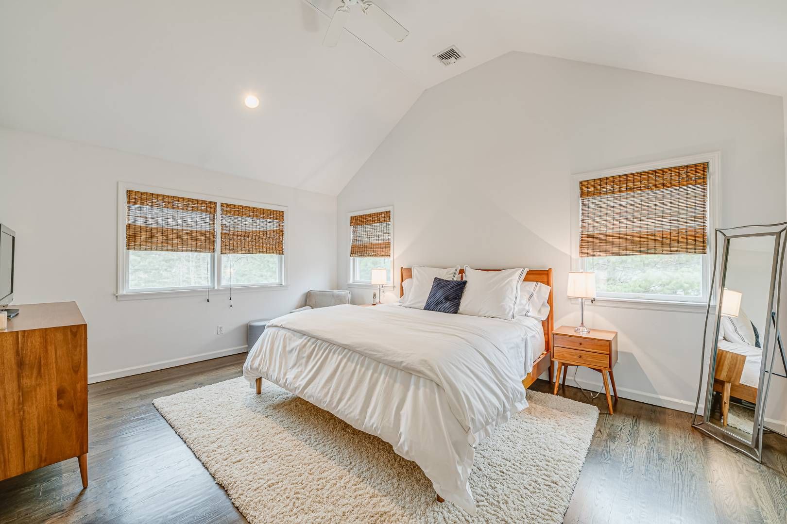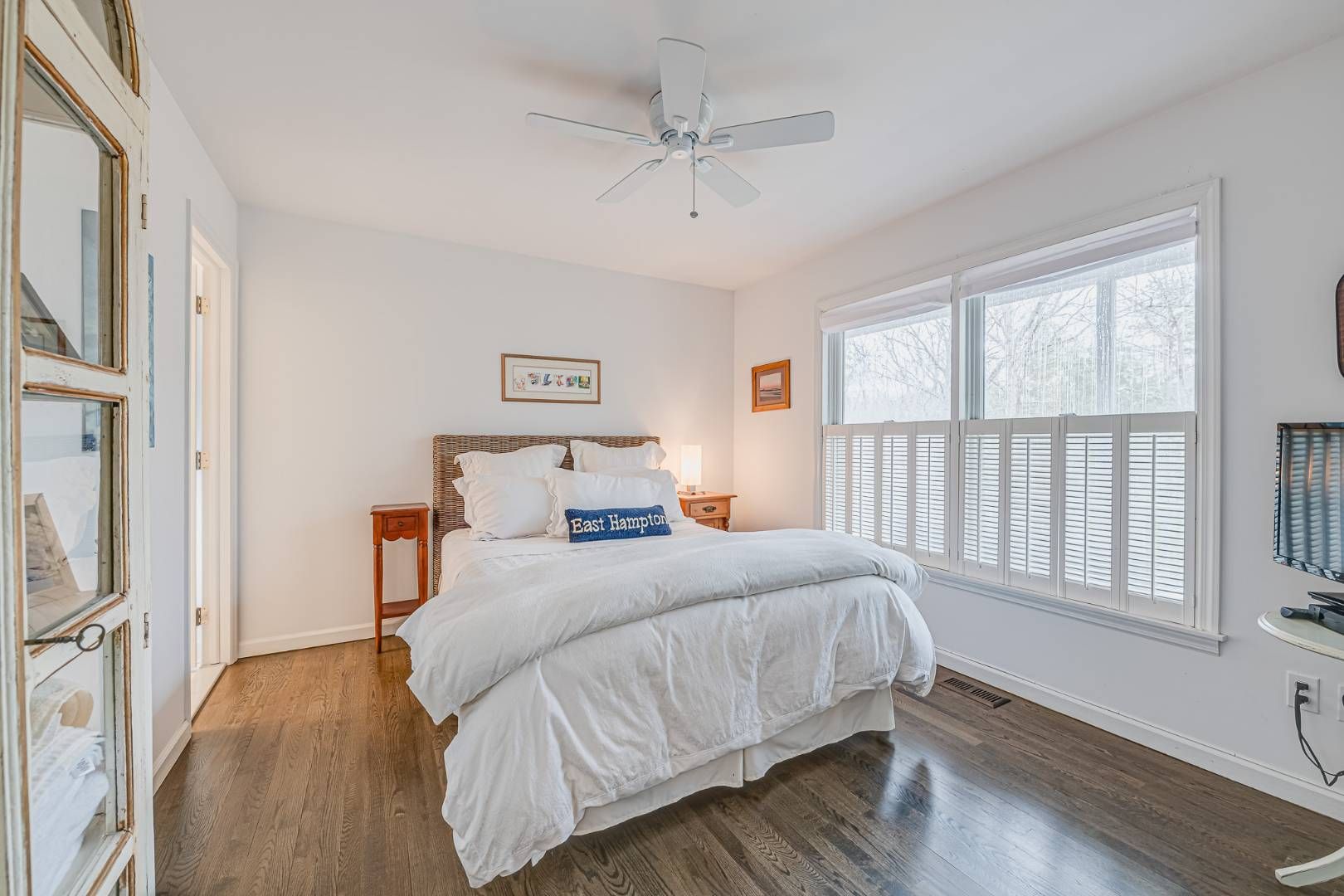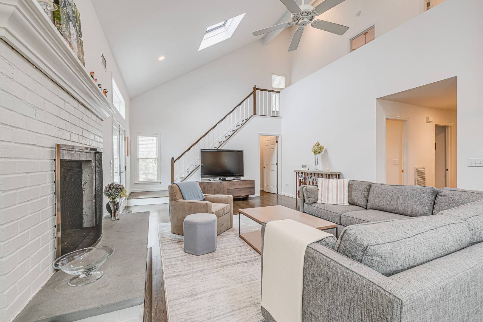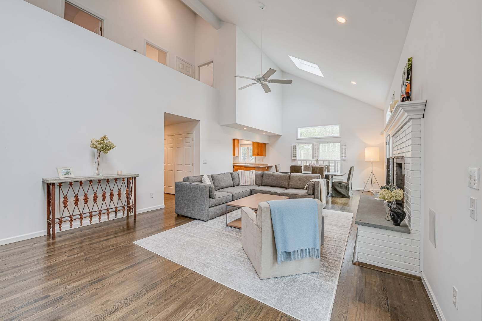 Located in East Hampton's near Northwest Woods on over a third of an acre, this well-cared for three bedroom, three and one half bath transitional style salt-box home with verdant yard and heated pool is turn-key and ready for you. Flooded with natural light from skylights in its vaulted ceiling, the gracious living room is this home's heart, and the warmth it exudes is immediately felt after entering through the front door. Features of this c