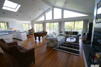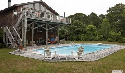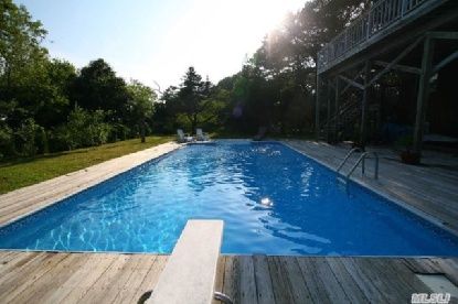 Sitting on the back deck overlooking Shinnecock Bay is a 5-bedroom, 3.5-bath home situated on .60 acres with room for expansion. 20'X40" inground pool with wood deccking surround. Upside Down style home with great room and kitchen. Fantastic sunsets from the upper deck. Tremendous possibilities.