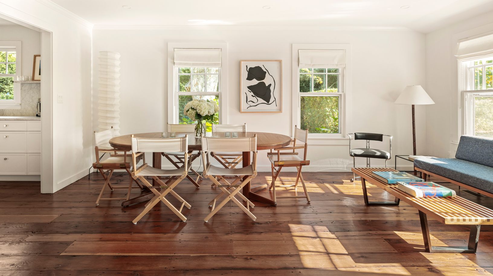 Located under a mile from the heart of East Hampton Village, this turnkey residence is set on .24 +/- manicured acres. With a full gut renovation in 2021, the home presents brand new interiors across two levels of living space. The mid-century aesthetic is noticed upon entry, with a seamless flow throughout each of the three spacious bedrooms and two impeccable bathrooms. An eat-in kitchen showcases marble and oak countertops along with stain