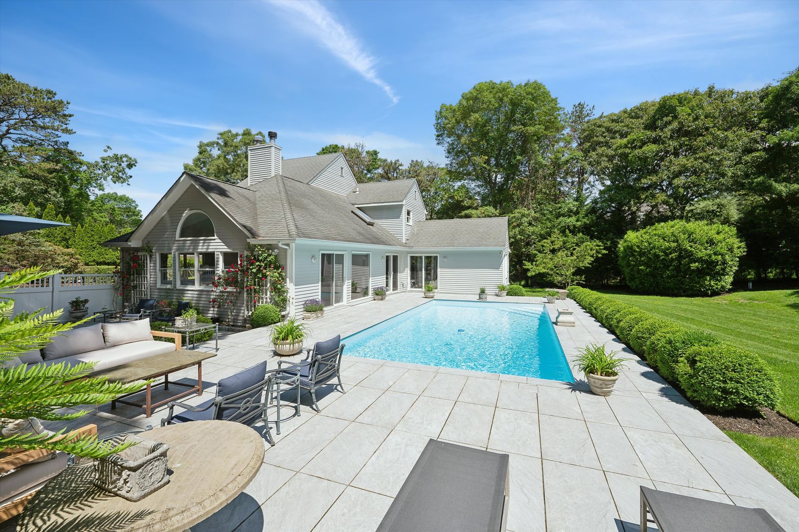 Turn-key home located south of the highway with a stroll to the beach. Less than 4/10 mile to bay beach access with comfortable bay breezes and a beautiful heated pool on a landscaped .45 acre. This traditional style home was built in 2002 with open floor plan spanning 2100 + square feet. Living Room has cathedral ceilings, fireplace and lots of glass to bring in the amazing light and multiple sliding glass doors that lead to your lovely deck,