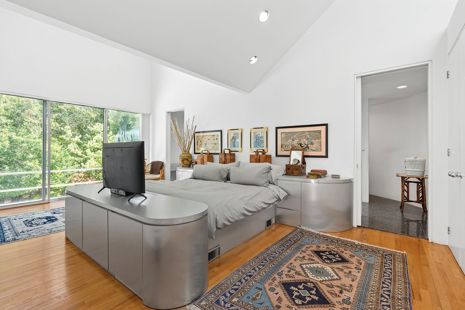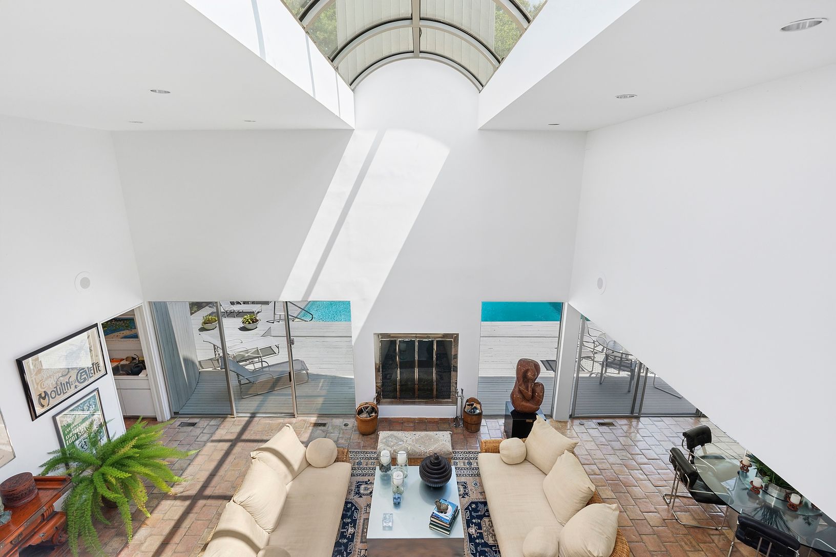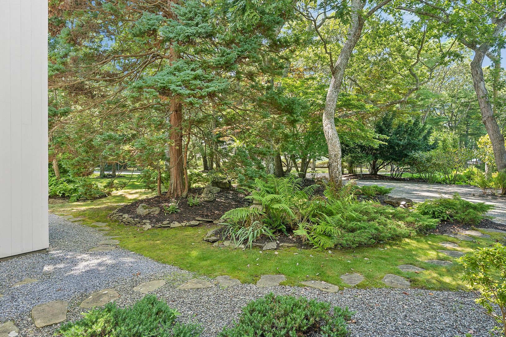 Available for the first time, The Porter House, designed and built by world renowned architect Myron Goldfinger for the award winning fashion designer Regina Porter. The home sits on a 1.4 acre lot on a quiet street in Quogue backing up to preserved land leading to Philips Creek. The property grounds thoughtfully created by a well known landscape designer of Asian influence. Identified by the poolside Essie Pinsker sculpture and antique Hon