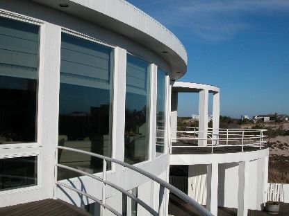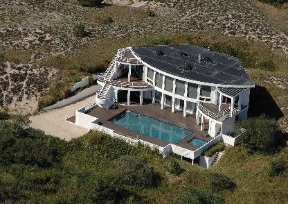 Just steps to the ocean beach is this Modern Sculptural Design with it's sweeping rounded walls of glass to take in the Amagansett ocean & dunes views; which are an integral part of the Hayes Architectural Plan. Admire the views from every room of this 3258 sq. ft. 5 bedroom, 4 full and 2 half bath home. Or take in the panoramic views (see all the way to Montauk) from the roof top deck. Enjoy the open great room, large family room in the c