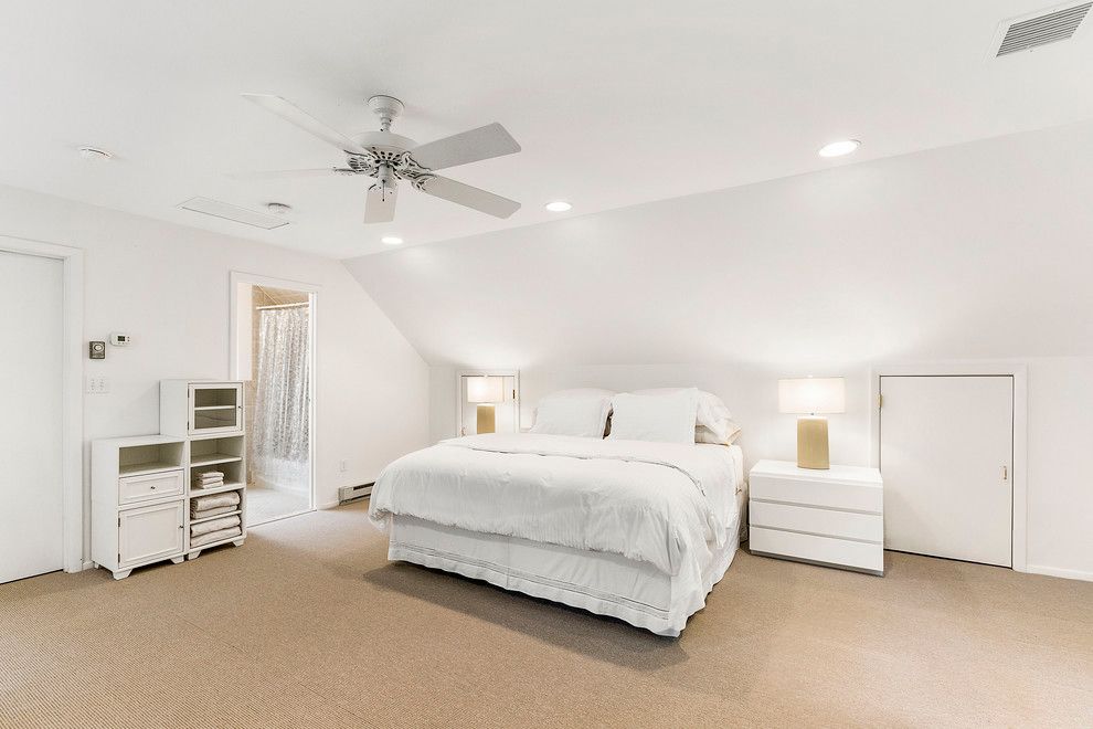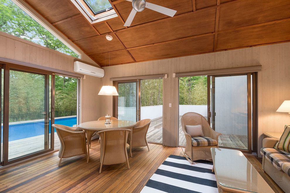 This pristine four bedroom, four bath home, which sleeps 10, has a living-dining room with a fireplace, high ceilings and generous glass doors leading to private deck and 20' x 40' solar-heated salt water pool. Spacious light-filled kitchen with high ceilings, an island-breakfast bar, and extensive custom cabinets. Enjoy indoor or outdoor living in the spacious sun-room that opens to additional deck, pool, outdoor shower, and cabana. The first