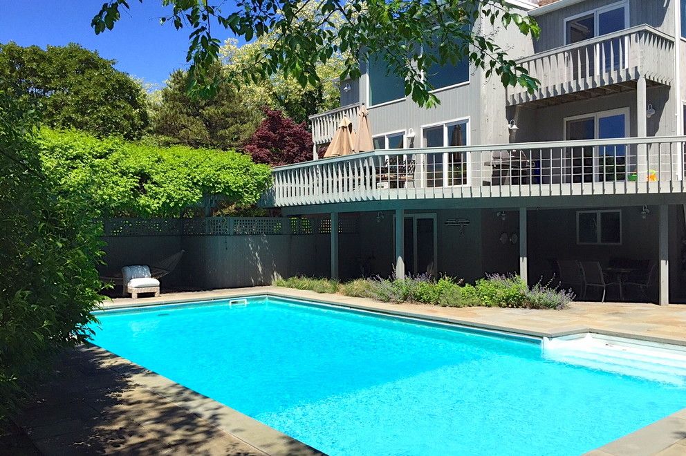 Super contemporary in a super location, convenient to Southampton Village and both the ocean and bay beaches. The living room has a double height ceiling with a fireplace with an open layout. There is a spacious den, dining area, and a kitchen equipped with stainless appliances and granite counter tops. The southern exposure provides great light all year round and both living areas lead out to the large deck overlooking the pool. Three of the