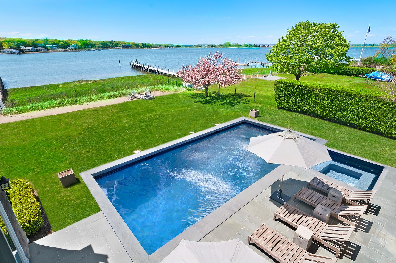 New to the market, this beautiful home features every amenity one could dream of. Prepare to be wowed by the gorgeous Sag Harbor Harborfront views and waterside pool and spa. Go for a ride in your boat right from your own dock! This 5 bedroom, 6 bath house has a state of the art kitchen with loads of space for entertaining and enjoying the summer. There are two master suites, one upstairs with a fireplace and one downstairs. Situated just minu
