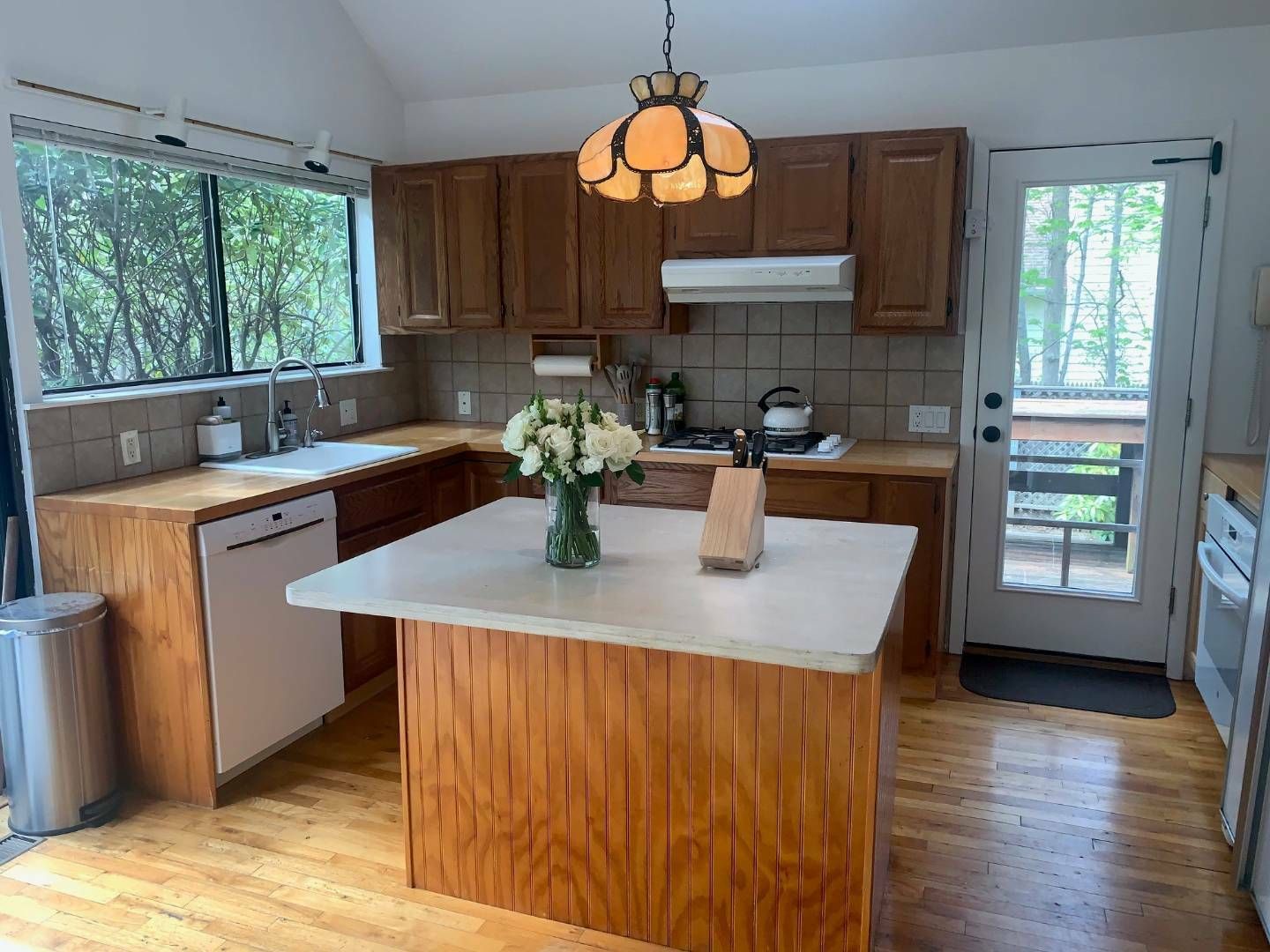 Floors: Hardwood, Tile