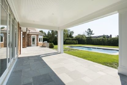 Private and superbly located south of the highway, this 9,896 +/- sq. ft. (first and second floors plus lower level), shingle-style, traditional home at the end of a quiet street in Southampton Village is set on 1.5+/- acres and is masterfully crafted by Paramount Custom Homes. Enter into the soaring foyer leading to the large great room with French doors opening to the expansive bluestone patio. On one side of this central room is the living