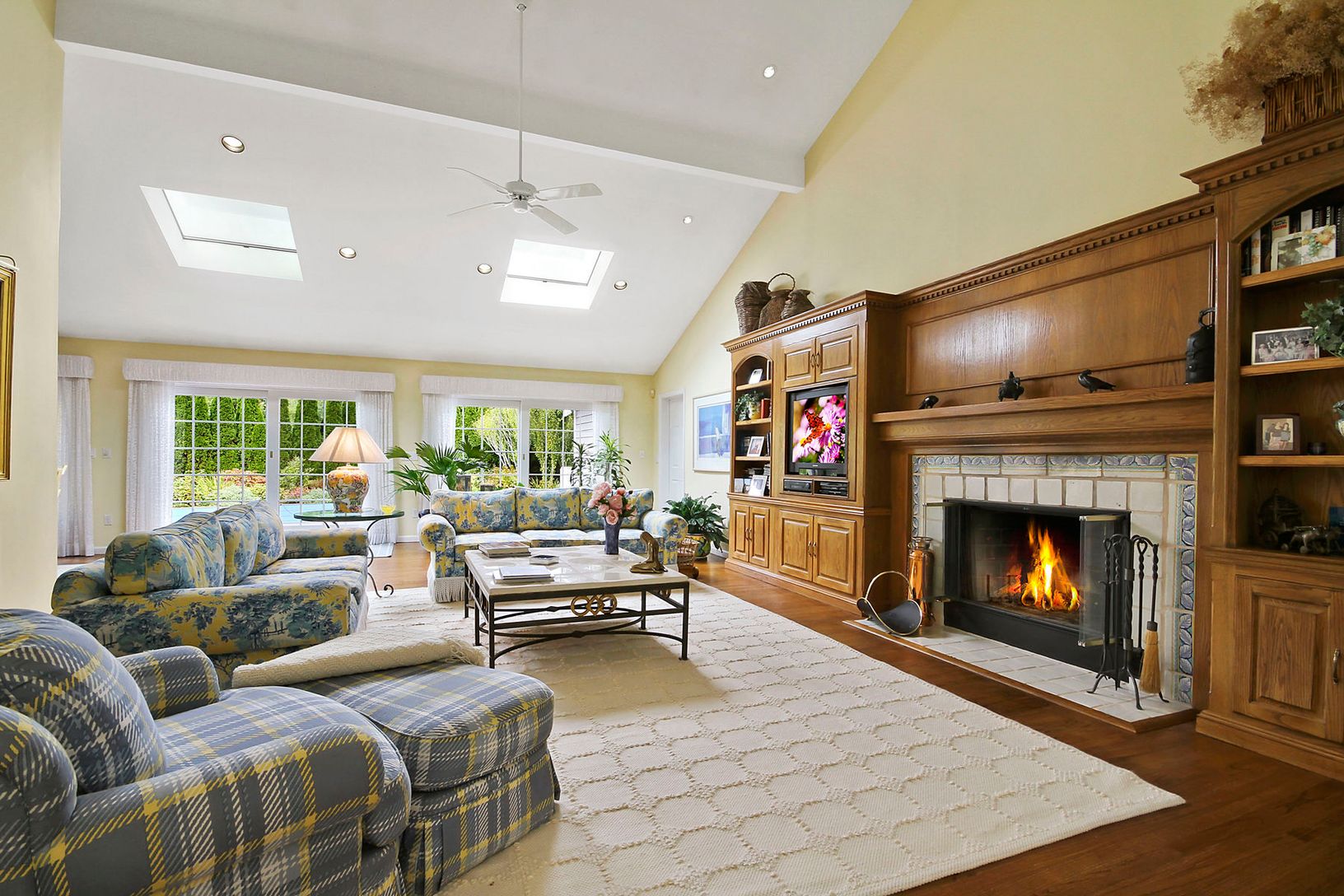 Post Modern of 3800 square feet, circular driveway and covered entry with double doors leads to an open floor plan. High ceilings and many windows throughout the house make it light and bright. It has a sound system and fireplace. Grand master suite has customized closet and bath with steam shower. Private guest suite and 2 additional bedrooms with total 4 baths, laundry and 2-car garage. Second floor has an office or TV room. Also, a full wal