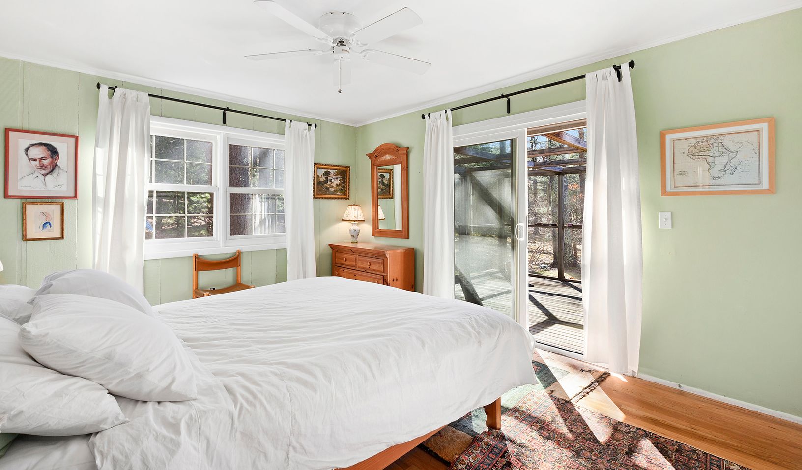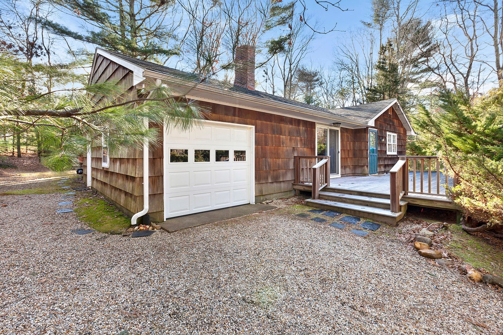 This charming East Hampton Cottage is three bedroom, two bath ranch and situated on a very private 1.00 +/- lot with a short distance to Northwest Harbor. The hill top home has a great positioning on the lot, the reserve across the property allows for amazing light from the west facing bay beach just down the road. The new front deck is mahogany and leads you to an open layout of the large living room and wood burning fireplace, dining area a