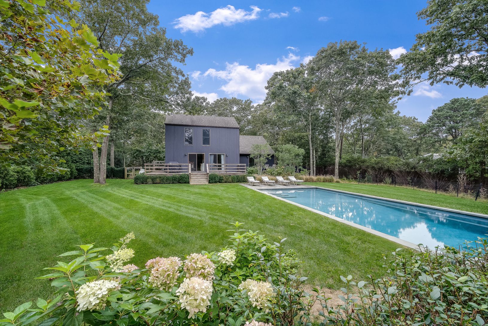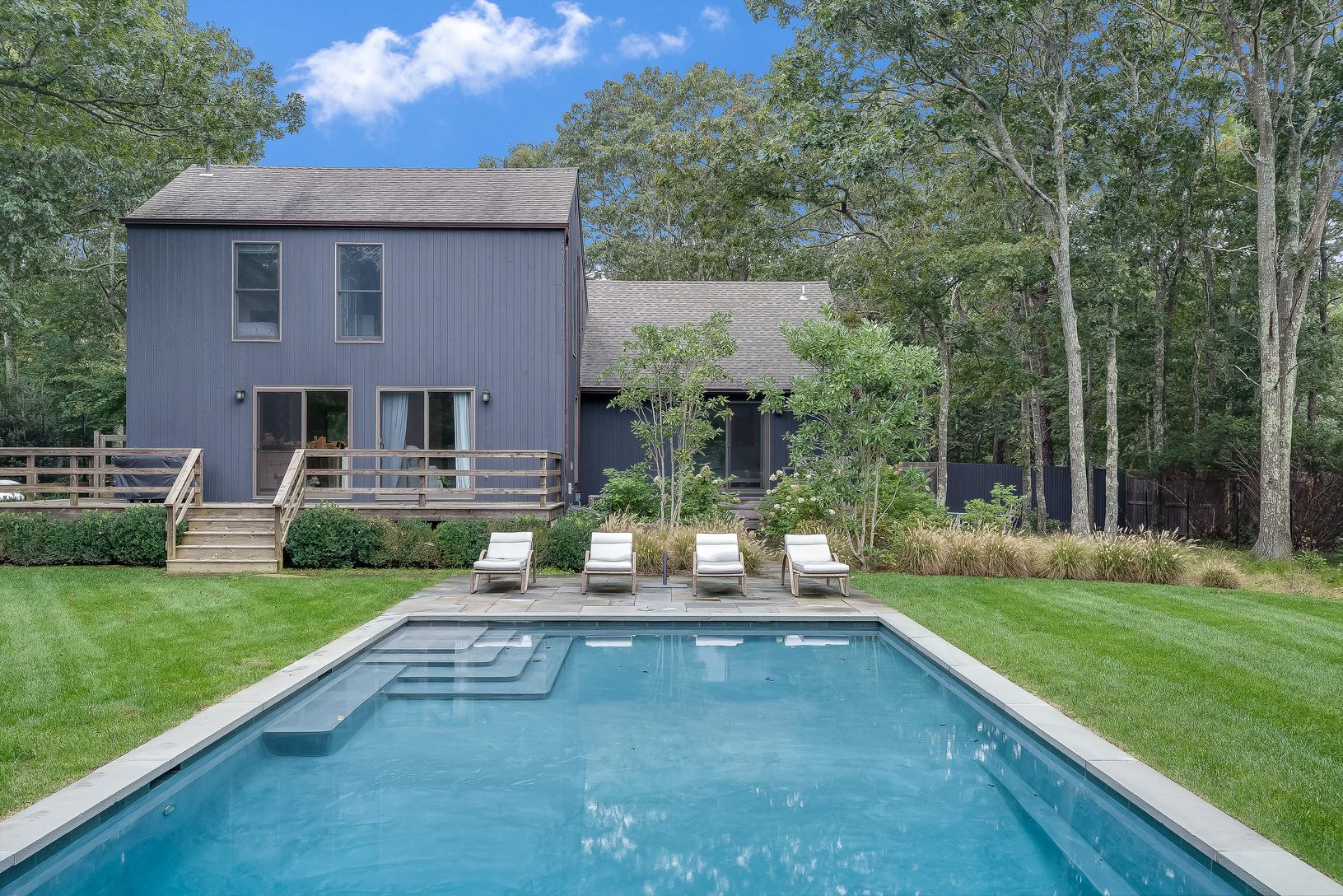 Escape to your own private oasis situated on a quiet cul-de-sac street, yet moments away from the village of East Hampton! This impeccably-renovated 4 bedroom, 3 bath, 2,100 square foot Contemporary gem nestled on a spacious .67-acre lot is a perfect place to unwind and enjoy blissful Hamptons living. Gorgeous light-bathed interiors are