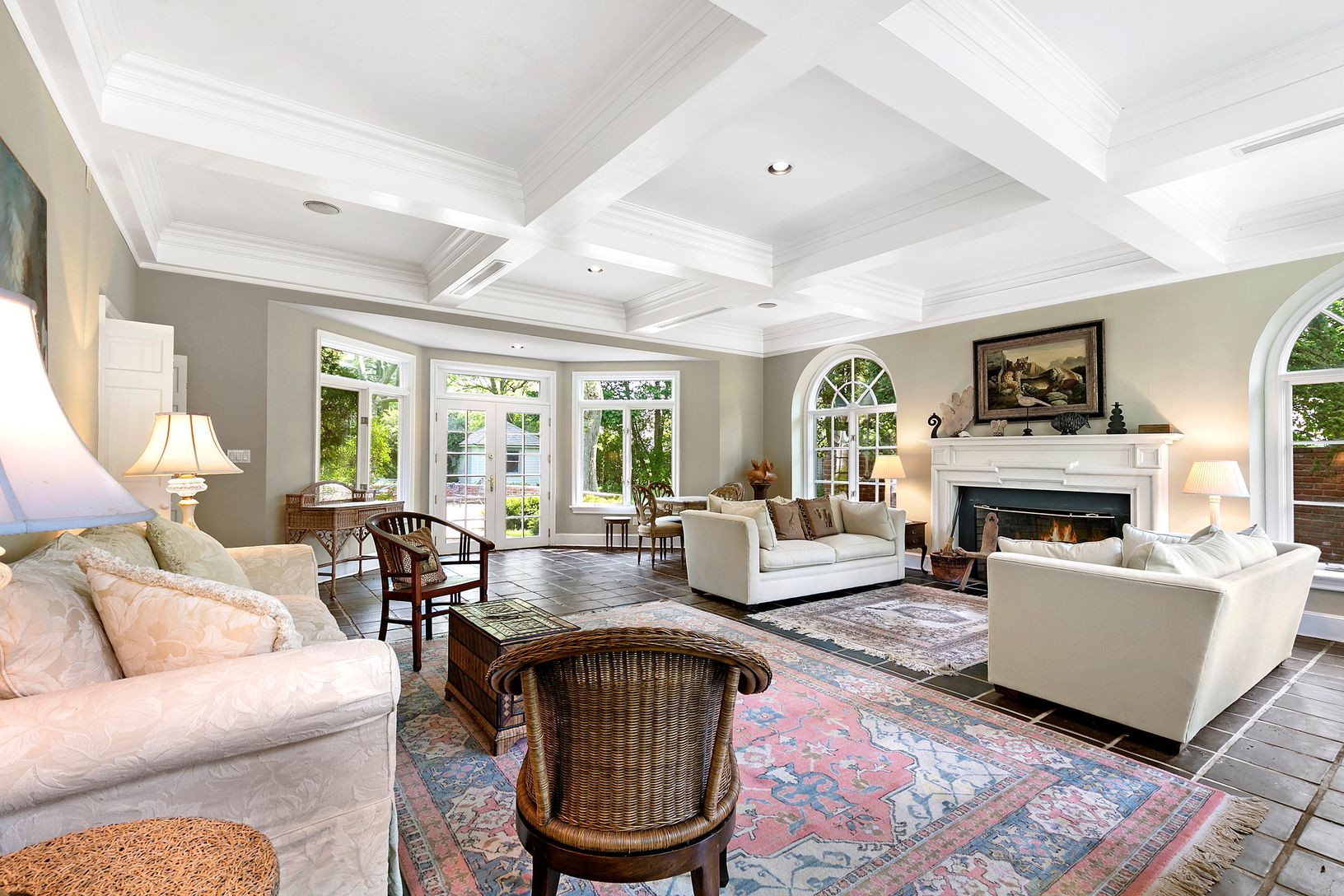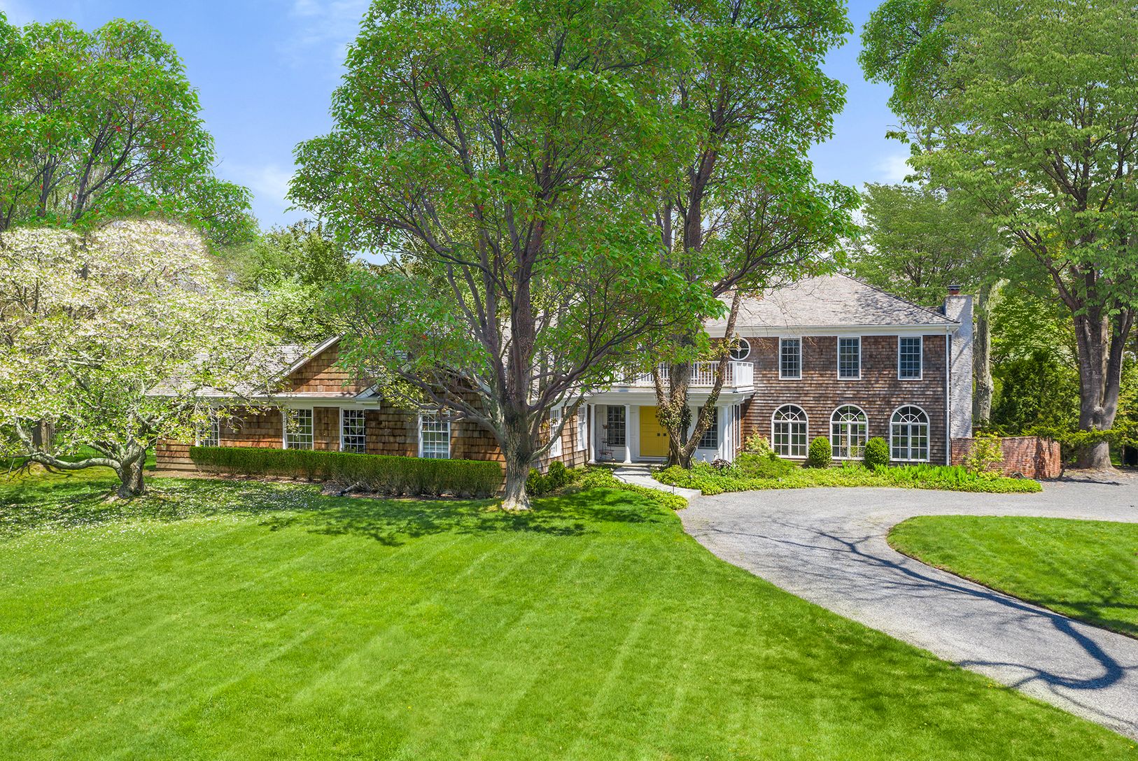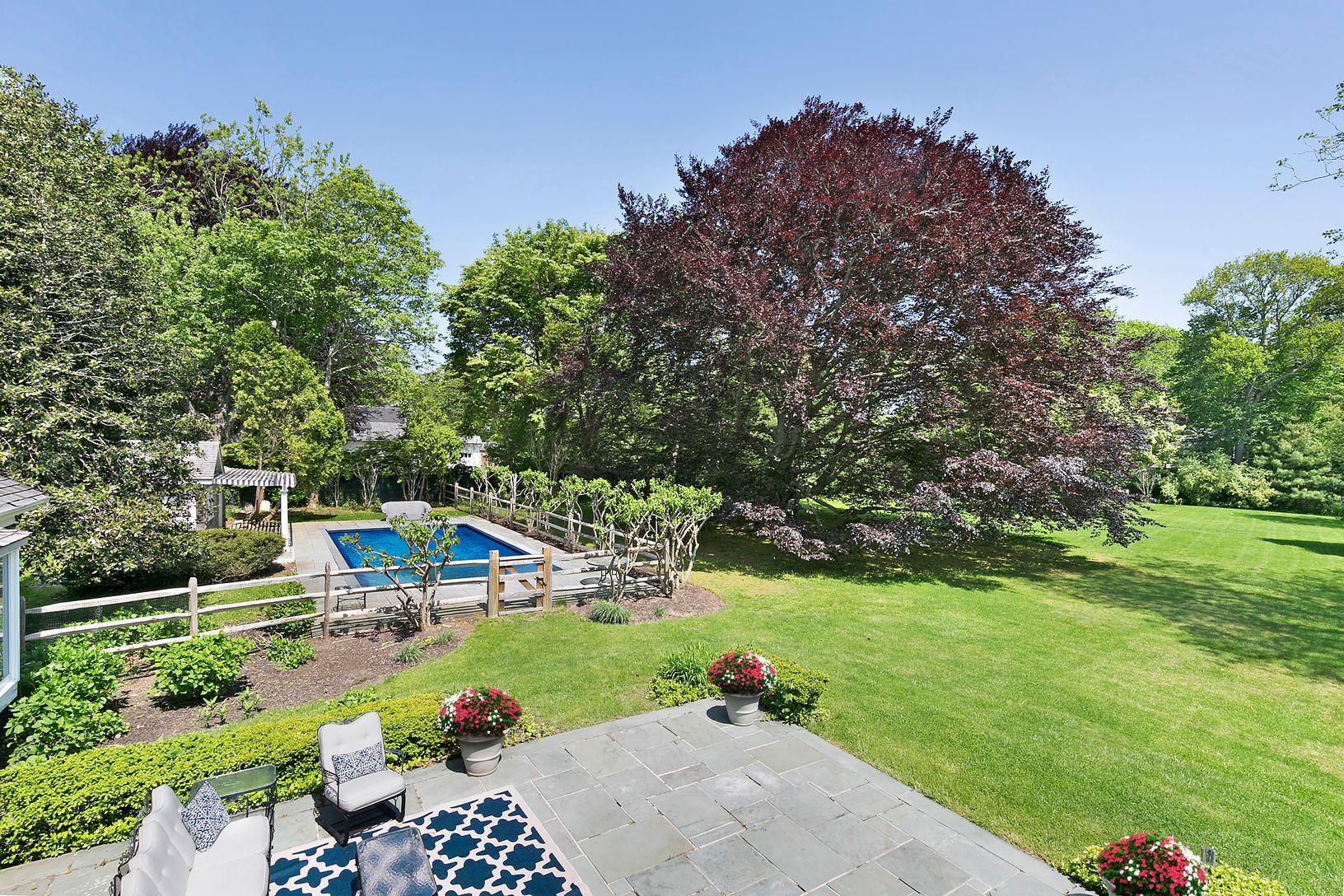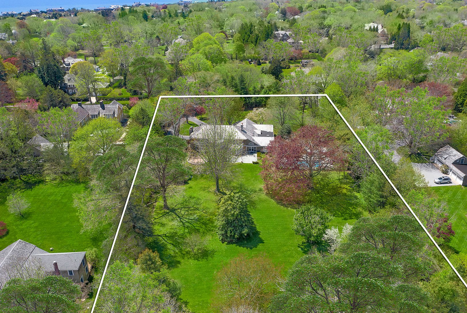 Important two-property compound includes house and pool on 1.4 acres plus adjacent 1.1 acre vacant flag lot. Large six bedroom house renovated in 1994 enjoys peaceful setting of a tree-lined street in the Village estate area. Living room, dining room, den, kitchen are all large common rooms. Landscaped grounds include mature trees, brick patio, swimming pool and brand new pool house. In close proximity (0.6 mile) to the ocean beach, the neighb