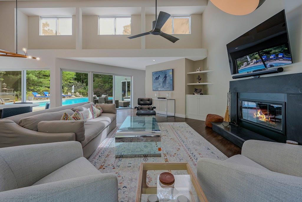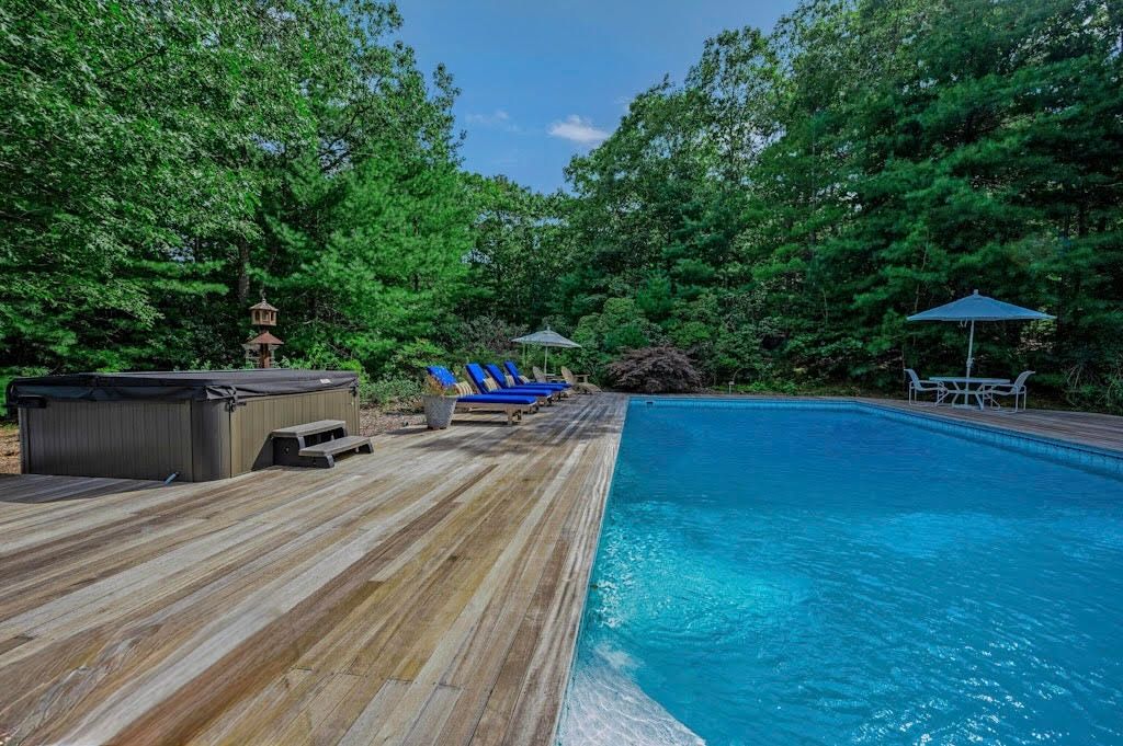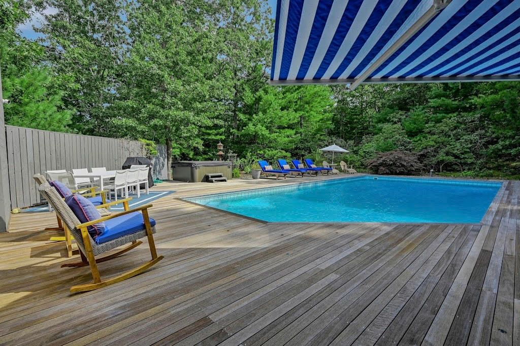 Spotless, bright 3 bedroom, 2 bath contemporary in East Hampton's Northwest is equidistant from EH Village and Sag Harbor. This lovely one level home was renovated in 2020 with new windows and sliders as well as interior painting, new wood-burning fireplace, wiring and beautiful walnut hardwood floors. The kitchen was renovated in 2017 with new stainless appliances and granite countertops. There is a media room on the lower level and loads of