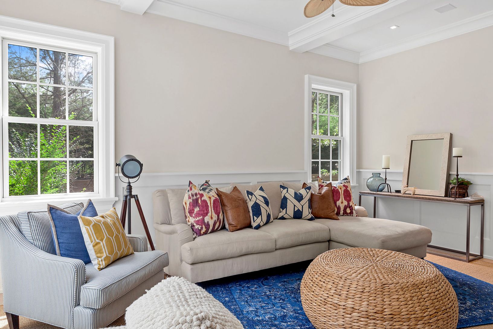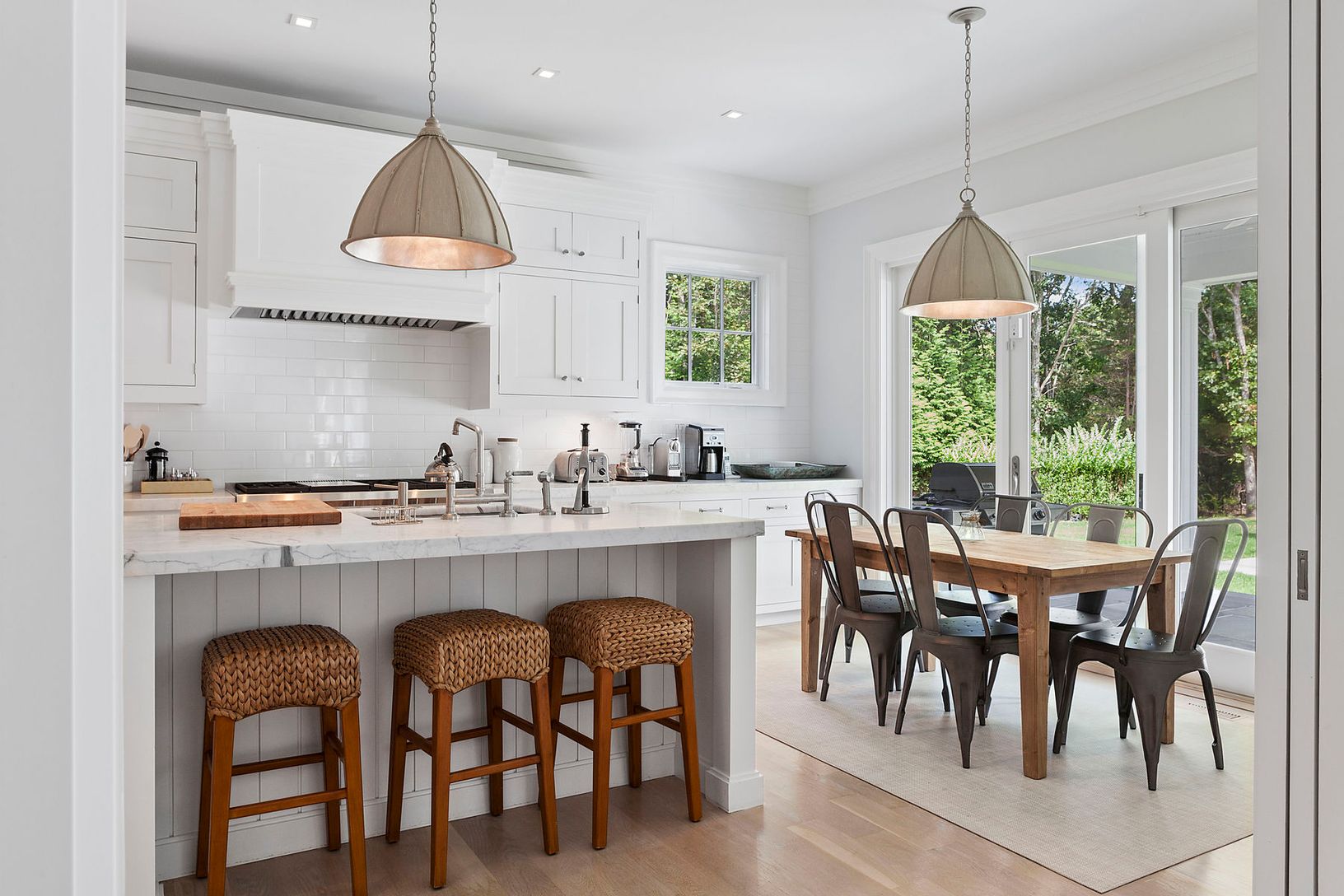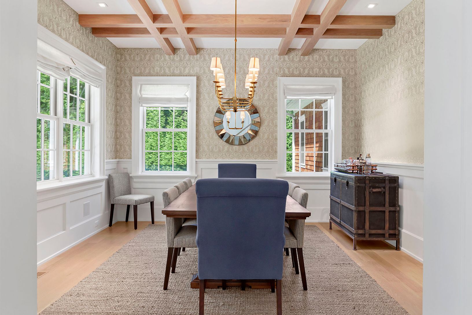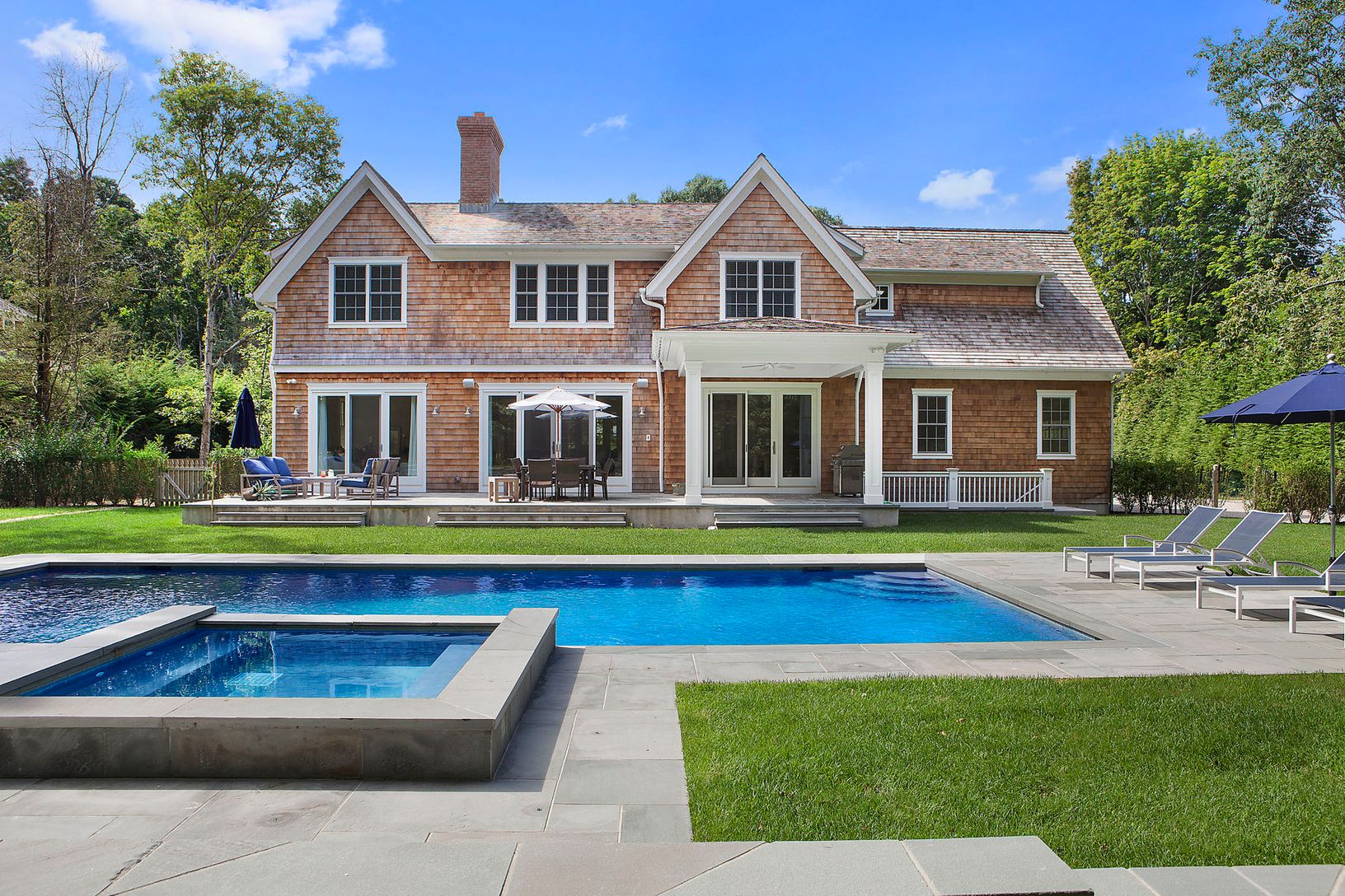 Privately set on .86+/- acres. Built by renowned Hamptons builder Farrell Building Company. 5,400sf+/- of living space, including the 1200sf+/- fully finished lower level. Tastefully designed shingled traditional with seven bedrooms including first floor junior master, and 7 full and one half baths. The foyer leads to a spacious great room with coffered ceiling and fireplace and adjacent family room, formal dining, eat-in kitchen with stainle