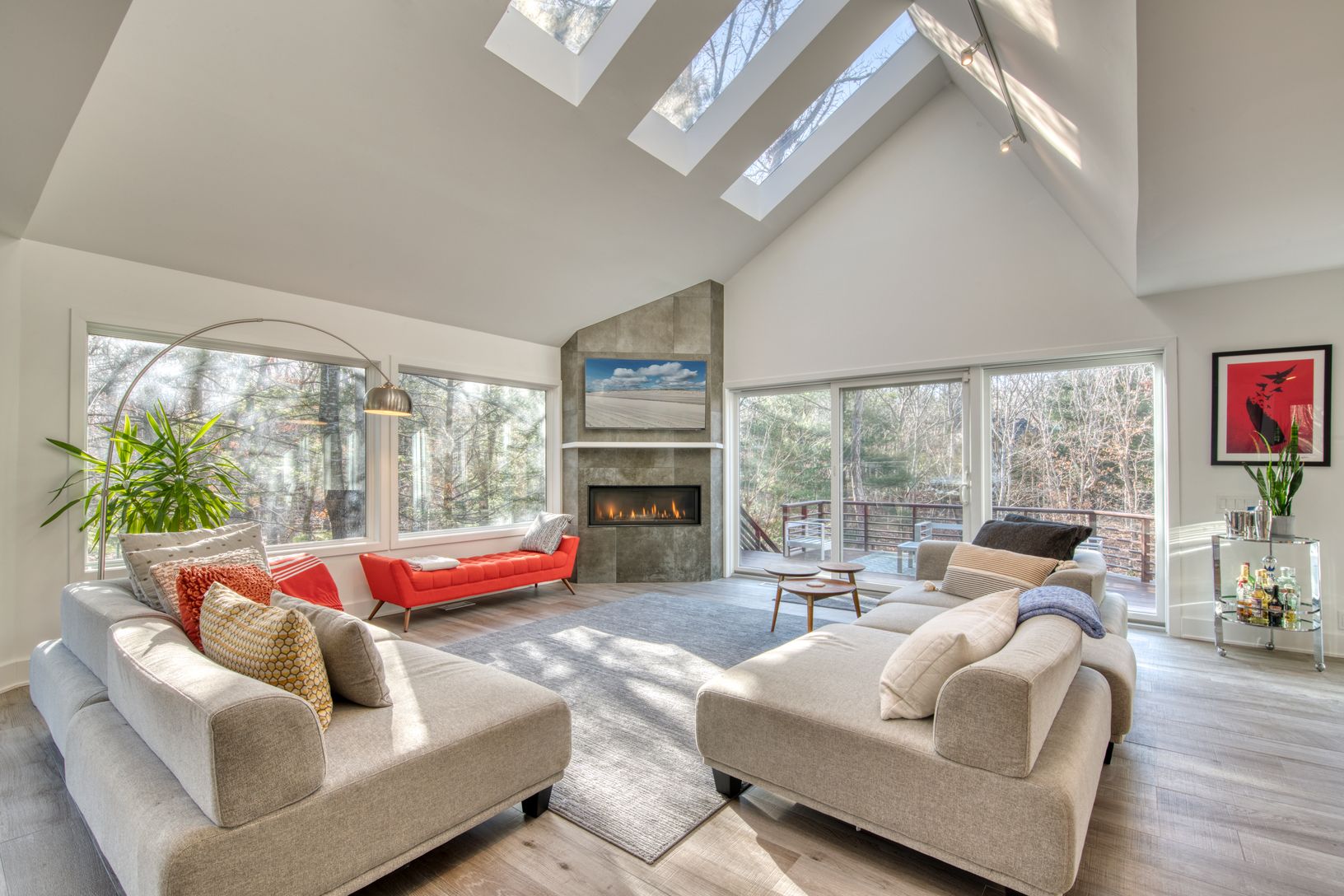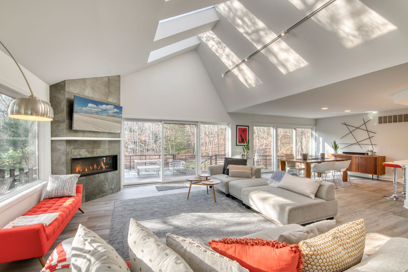 This spacious, light, and bright, modern residence is centrally located on a quiet side street, moments to the Villages of Sag Harbor, East Hampton, and Bridgehampton. In impeccable & turnkey condition, this renovated home provides three bedrooms, two full and one-half baths across 2,300 +/- sf of living space. Sited on 1.29+/- acres, the residence features an open great room with a fireplace, vaulted ceiling, skylights, oversize windows,