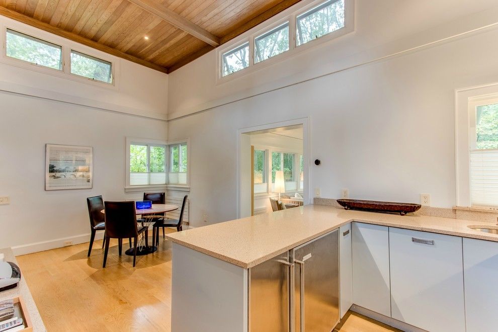 Welcome to your house in the tree tops. This modern redesigned cottage by the architect owner has been built like a boat - every space has been wonderfully utilized. Sleek and modern are the buzz words for this 2 bedroom, 1 bath home. High ceilings, skylights, and walls of windows let the sunlight in and the open plan gives a great sense of space. The attention to detail is amazing and there are design delights throughout the house. Water view