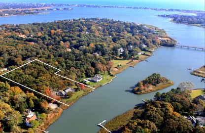 .In the hamlet of Quiogue lies this perfectly private 2.4 acre waterfront compound. Built in the 40's, main house has 4 bedrooms, 3.5 baths,enjoys 2 firelplaces, billiard room, slate patio, all delightfully close to the water to better observe the abundant marine wildlife. Garage with large office above, gunite pool/spa with poolhouse, half acre zoning presents the possibility of creating additional lots.