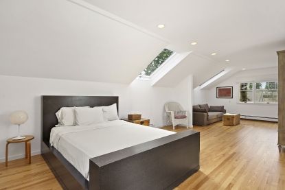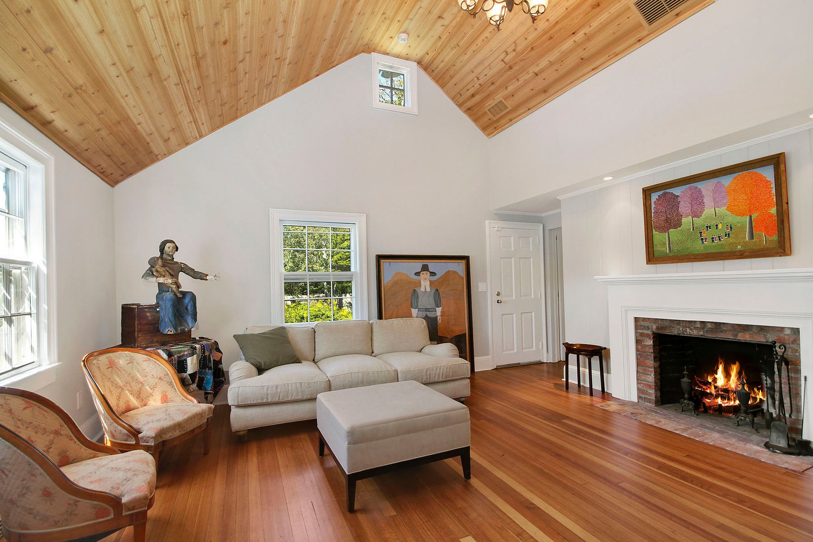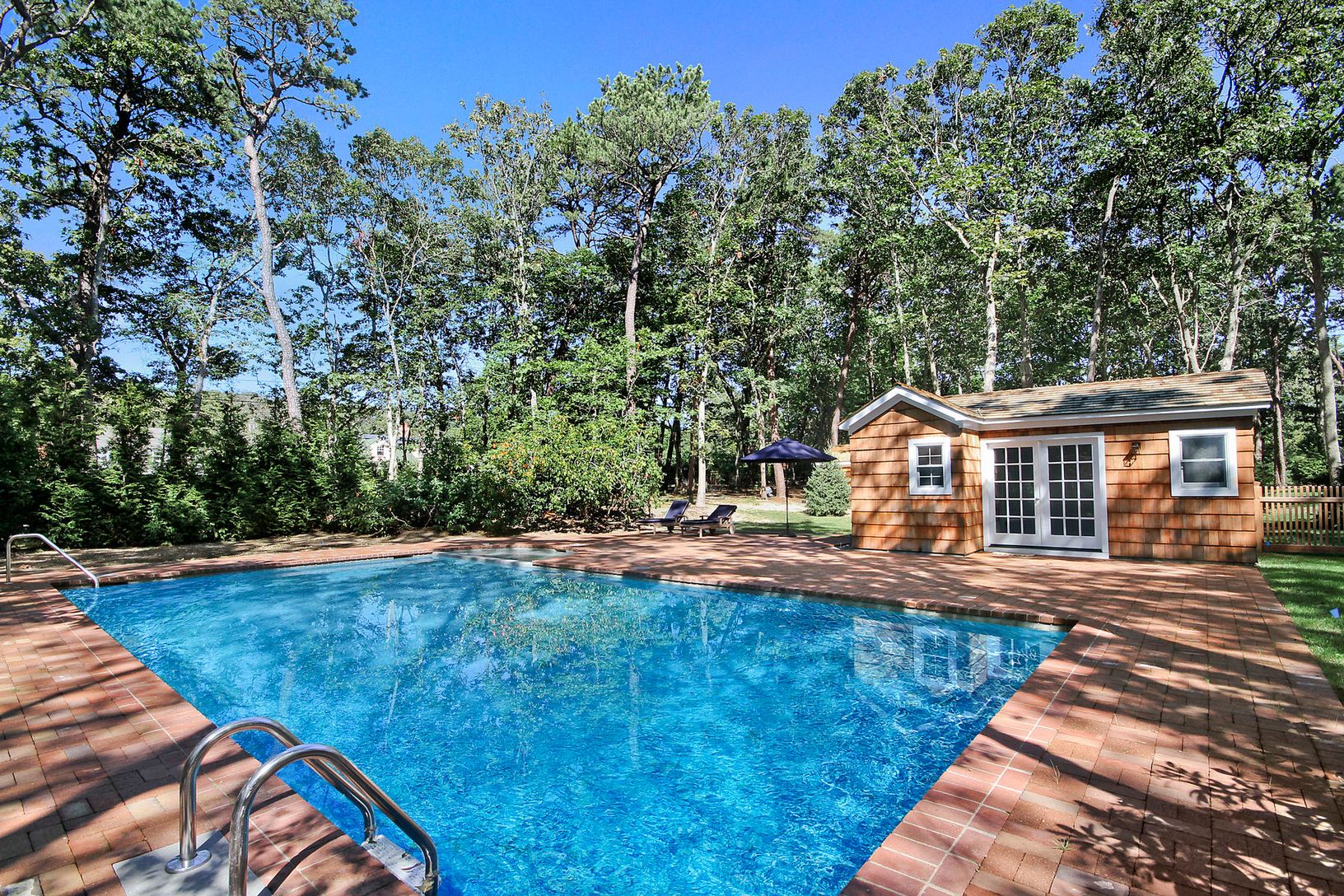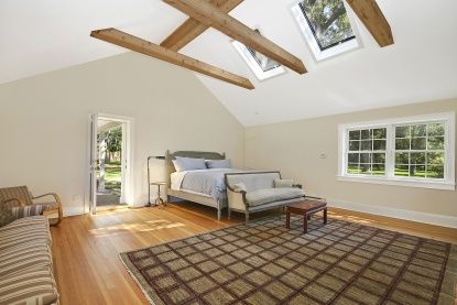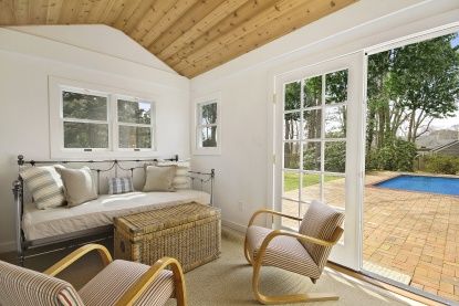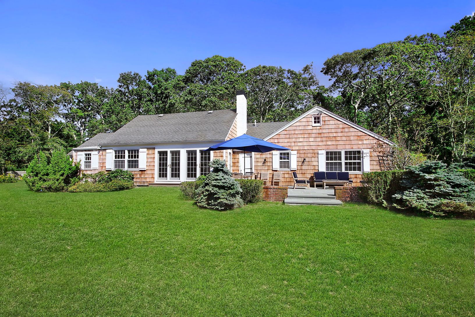 Privately located on Aspatuck Creek in the bucolic hamlet of Quiogue (minutes from downtown Westhampton Beach), this 2.4 acre waterfront property has been completely renovated with decorative touches by a world-famous designer. Elegant and appealing at every turn, the main house features a waterfront great room with built-ins, a brick fireplace, cedar vaulted ceiling, peg wood floors, and French doors leading to the waterfront patio. There's a