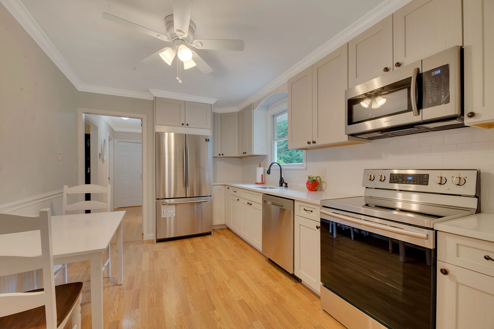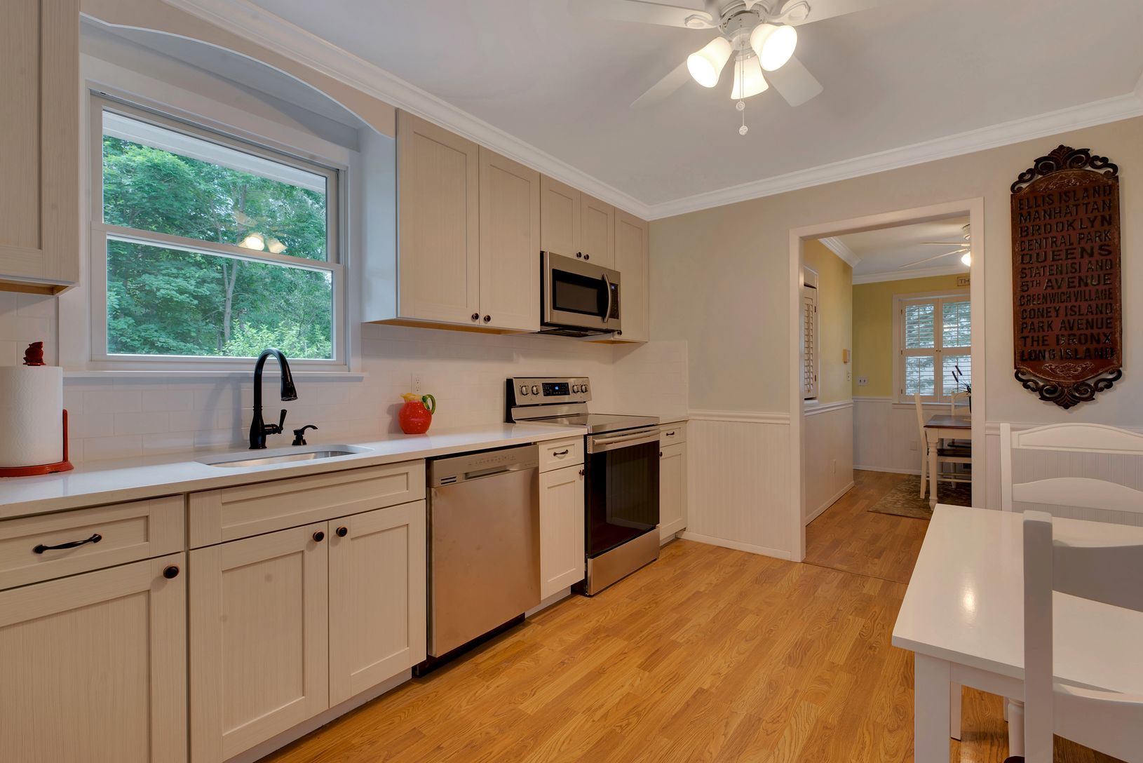 Look no further! Beautifully cared for expanded ranch with Master and newly renovated bath, two nice size bedrooms, full bath with pedestal sink, tub with subway tile, wainscotting, crown molding throughout entire house, fireplace, newly renovated kitchen with quartz countertops and all new stainless appliances, dining room, central air, natural gas heat, full basement with laundry, front porch, large deck and spacious yard with new shed, RV a