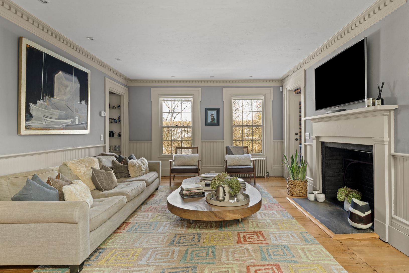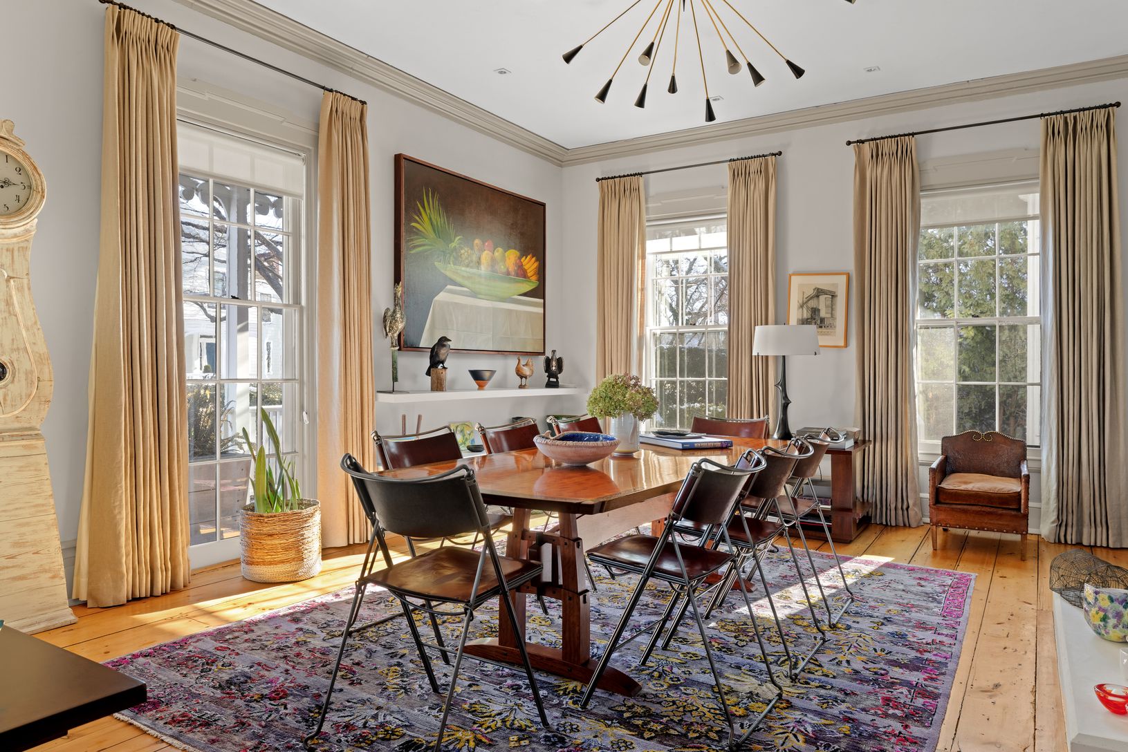 Dating to circa 1765, with walls originally constructed from the ballasts of ships, and sympathetically modernized in 2012, this graceful 4-bedroom former manse of the Old Whaler's Church offers impeccable style and irreplaceable character at a coveted address in the heart of Sag Harbor Village. Period architectural details in the Egyptian Revival style with a whaling motif, matching that of the church, remain beautifully preserved from an add