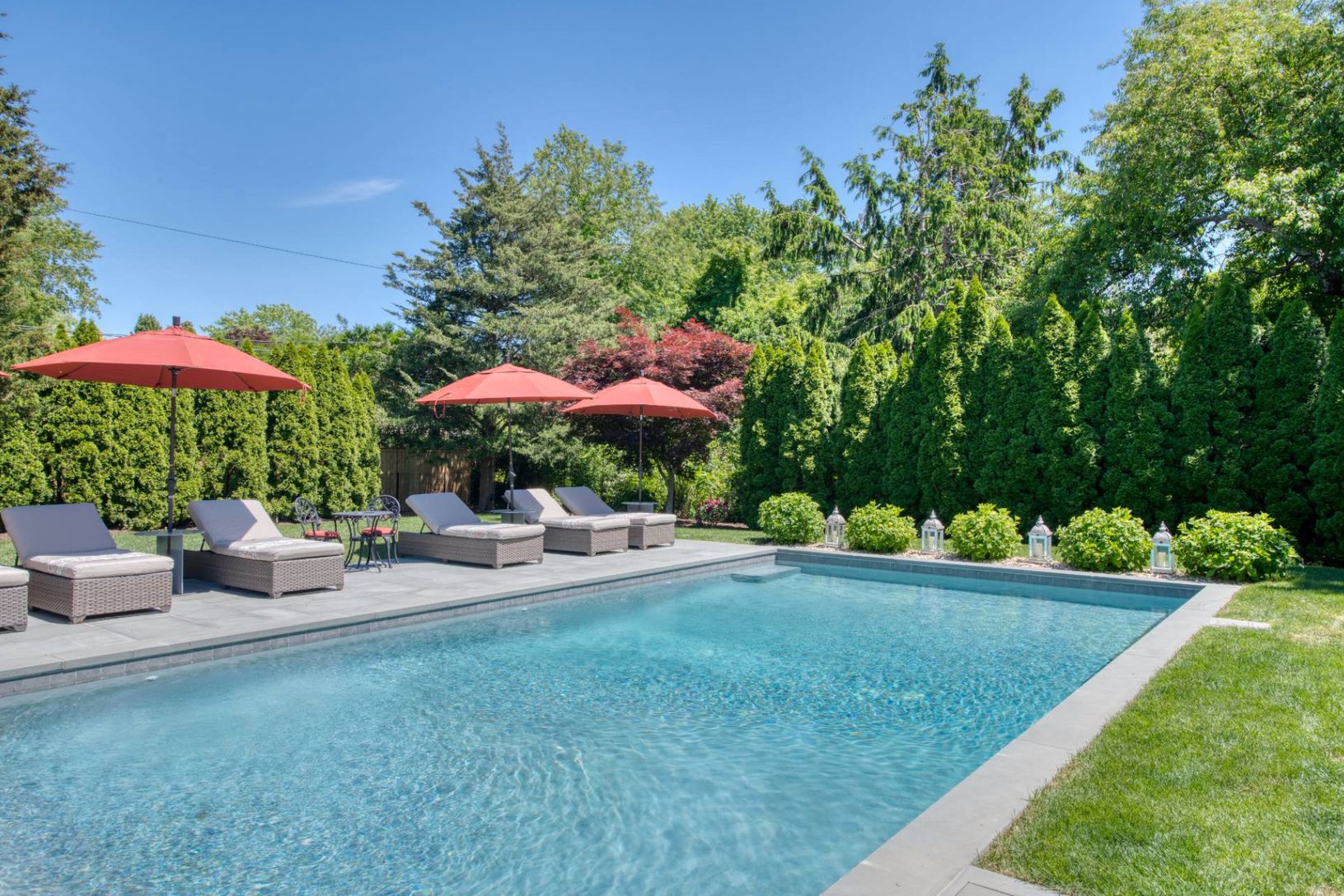 This Shelter Island retreat has every amenity necessary whether the goal is entertainment or relaxation. Located on a quiet road 300 yards from your association beach, the 4200 square foot home features two enormous bedroom suites among a total of 5 bedrooms, 4.5 baths. The property feels like a boutique hotel with stylish landscaping, first and second-story decks, a gunite saltwater pool, spa, cabana, fire pit, and blue stone patio and pathwa