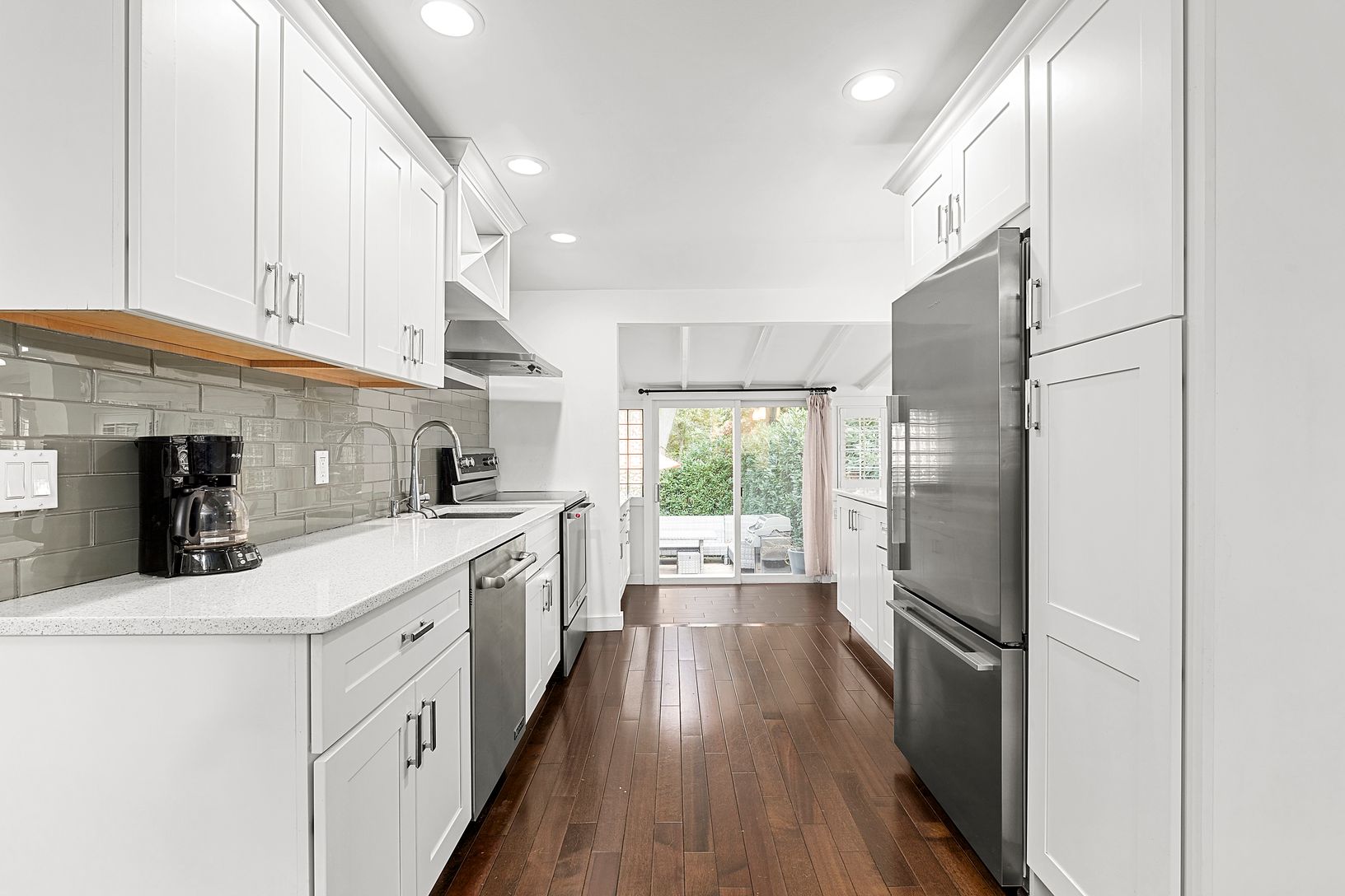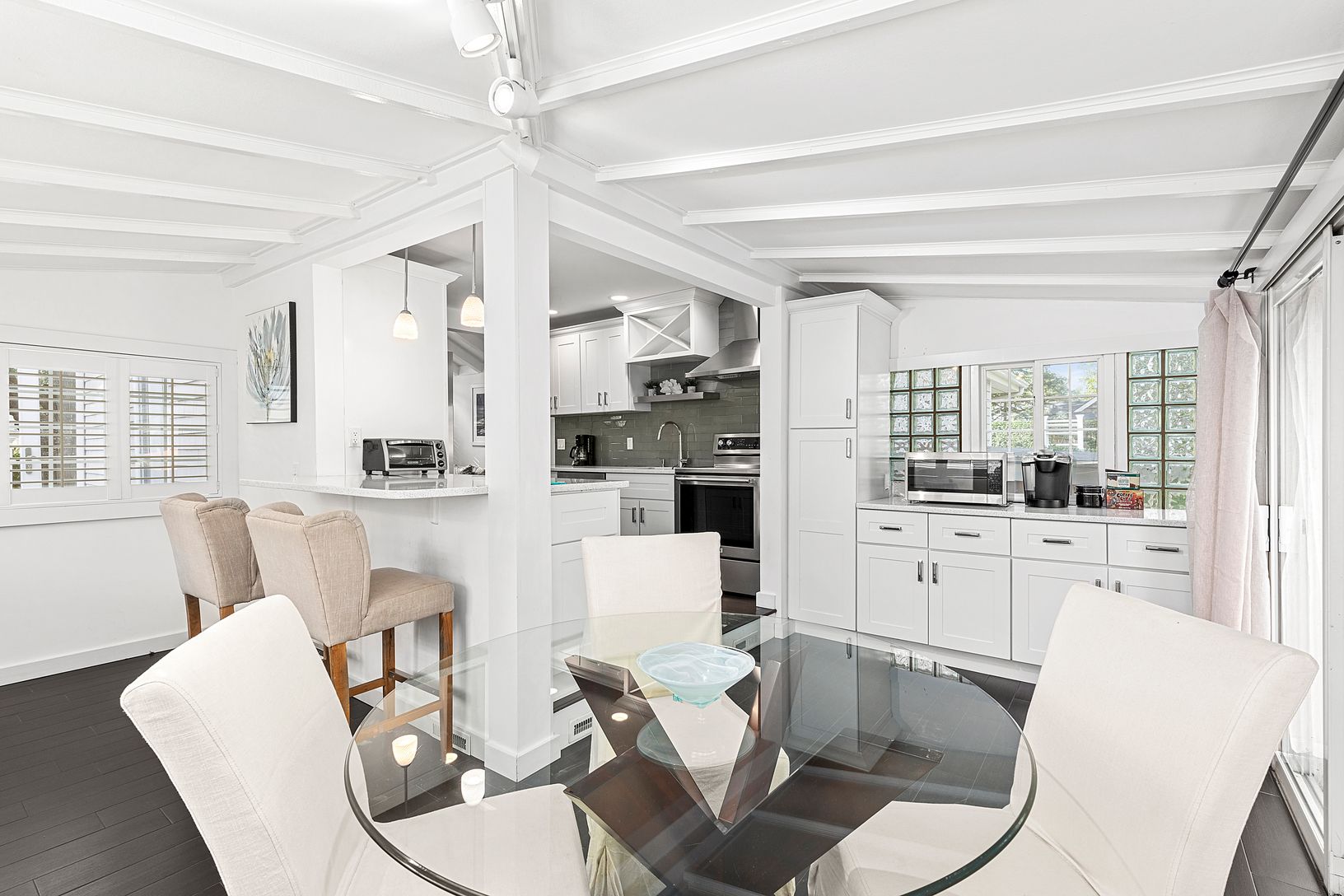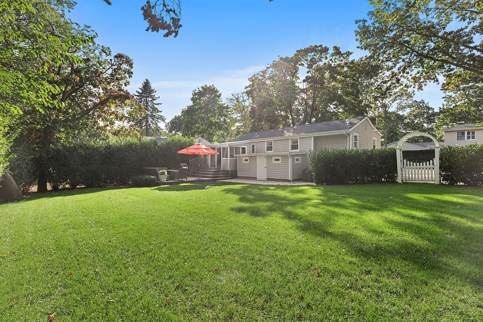 Located just outside the Village of Sag Harbor and up the road from the Pine Neck community beach, this turn-key home presents an excellent opportunity. The house is stylishly updated and consists of three bedrooms and two full bathrooms, including one en-suite in the primary bedroom. The living room opens up to the kitchen, which is outfitted with top of the line appliances and custom cabinetry. Moving through the kitchen towards the backyard