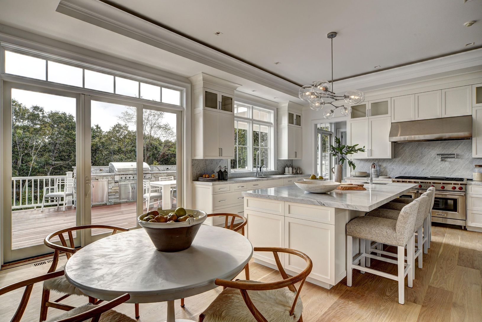 In an area that's fast becoming the in place north of the highway, evidenced by a flurry of recent house and land sales, a magnificent McDonough & Conroy designed 8 bedroom, 11 bath shingled Gambrel traditional anchors a 4.5 acre estate that misses little in creating the ultimate Hampton retreat. Midway between ocean and bay, this 11,000 SF+/- residence offers consummate detail and impressive symmetry on three levels of living space. A dra