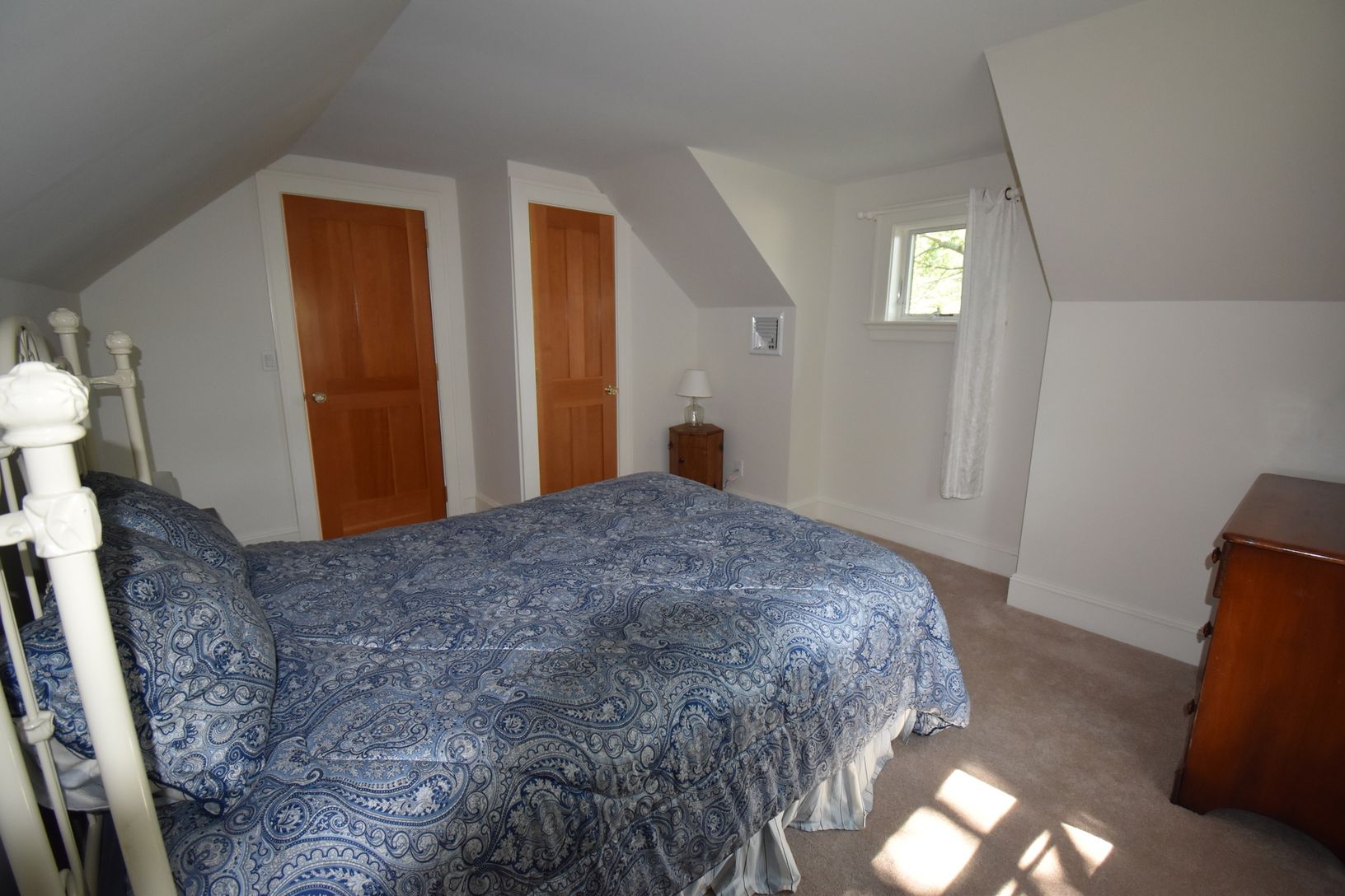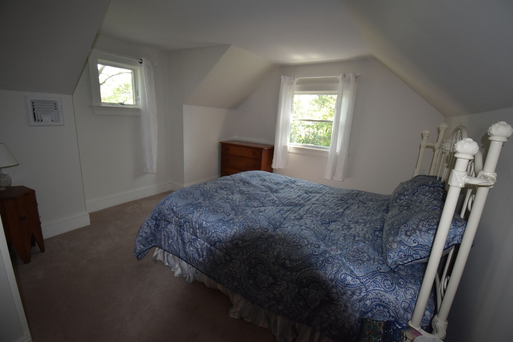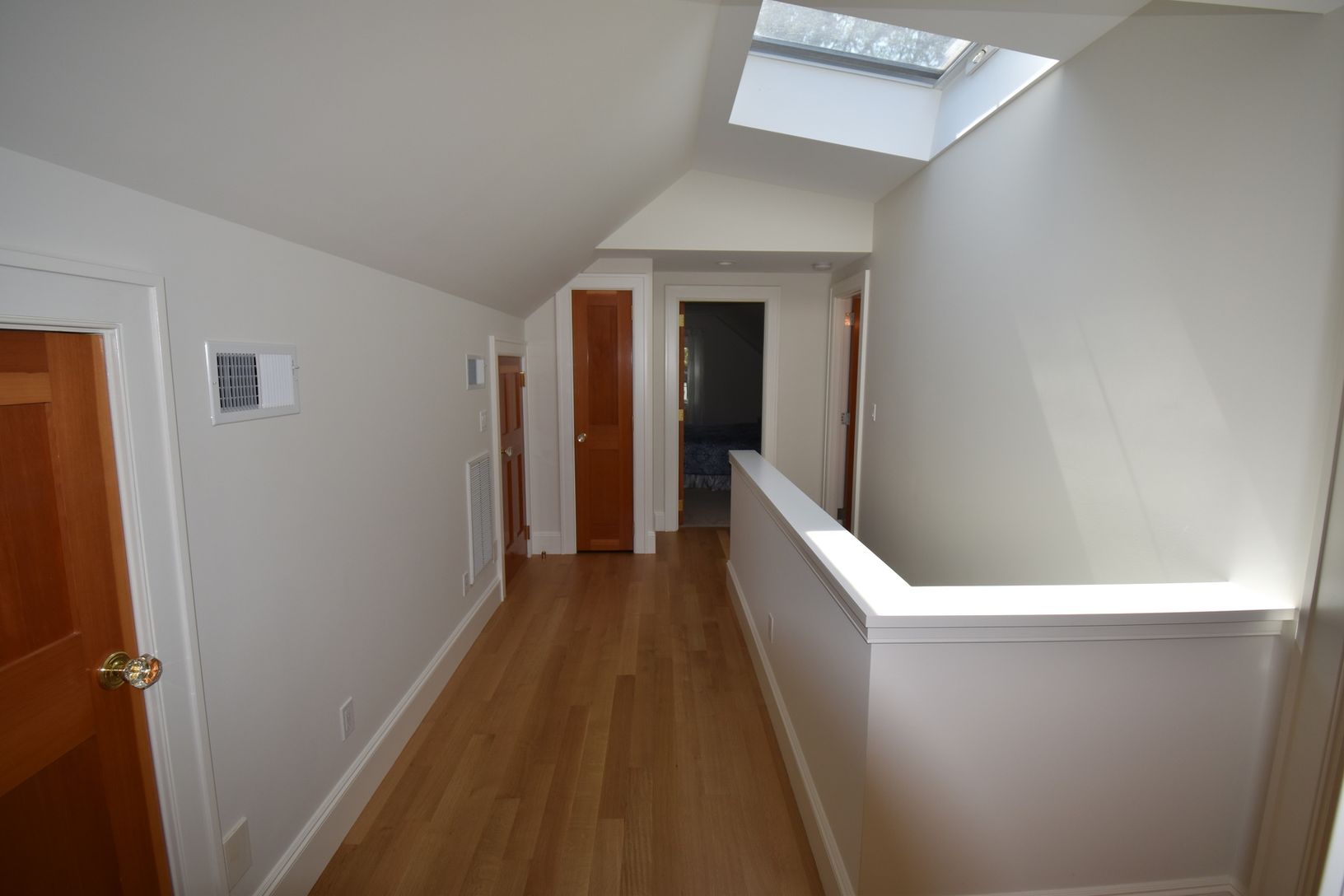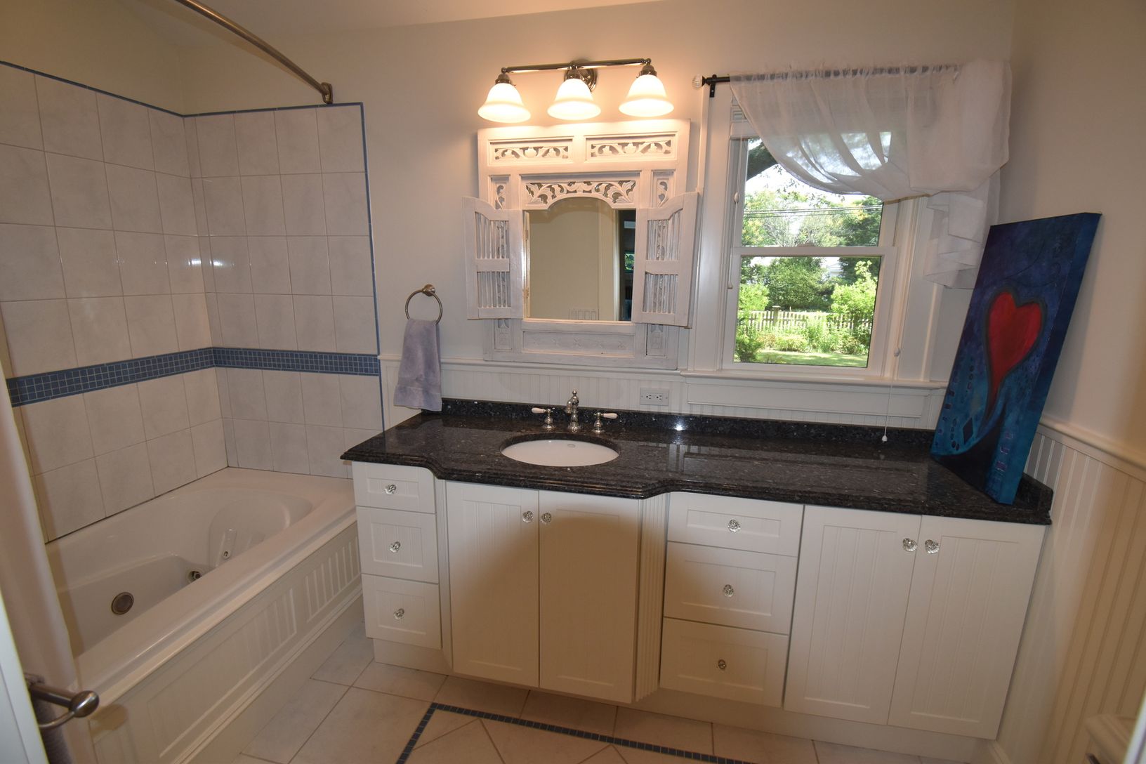 Craftsman refinished four bedroom, two and one-half bath Cape. New hardwood maple floors, as well as new solid Douglas Fir bedroom, bath and closet doors. Updated baths and kitchen. Crafted quality crown and base moldings. First floor master en-suite with custom skylight, custom maple floor design. Stained glass door to master bath with spa tub. Central air, central vac, Mahogany deck, new cedar shake siding, trim and windows. Just a quarter m