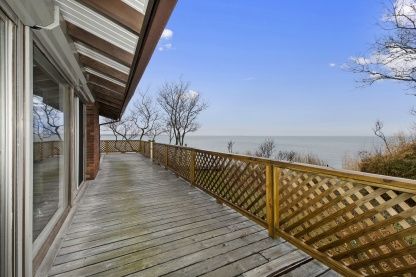 Rental Registration #: 16 - 1,092 Beautifully landscaped and set high on a bluff with sunset views over Gardiner's Bay, this three bedroom, two bathroom contemporary has been recently renovated - making for a terrific waterfront beach house..