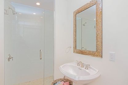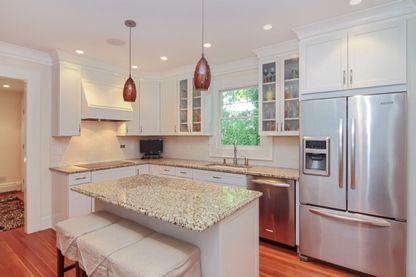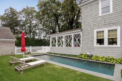 Renovated home with four bedrooms and three baths plus a separate one bedroom, one and one half baths Cottage of 700 +/- square foot also available for extra rental amount if needed. A chef's kitchen with elegant marble counter tops, BBQ area and covered porches are perfect for summer outdoor dining. There is a new heated gunite pool and spa heated by street gas so,you never run out or have to deal with propane deliveries. Finished basement,