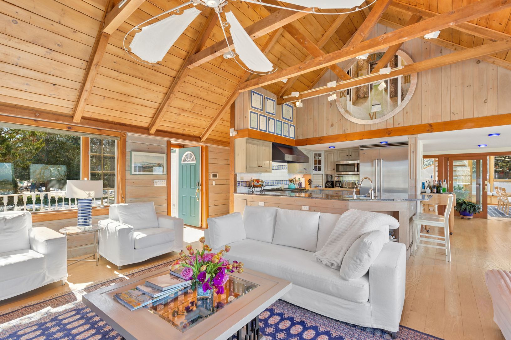 Waterfront living in Southampton. Set on 1.2 acres with sweeping open water views and a private dock, this exceptional property offers privacy, space, a classical Hamptons summer lifestyle.