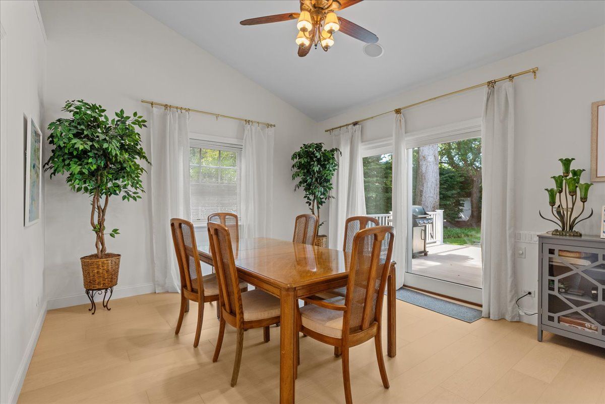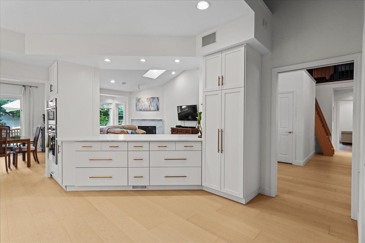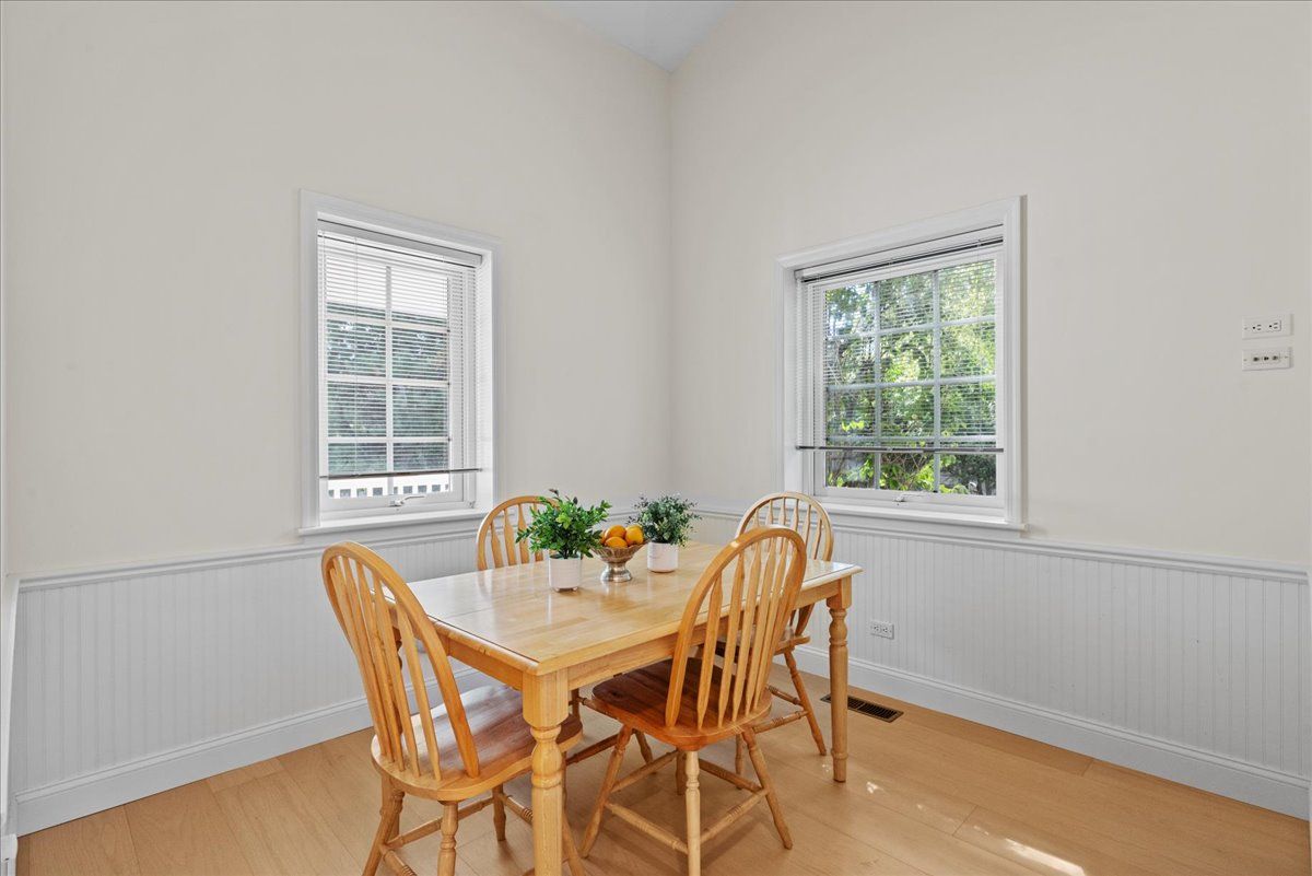 The main level features high ceilings, a living area, updated kitchen w/ a dining nook and breakfast bar, and an additional d
