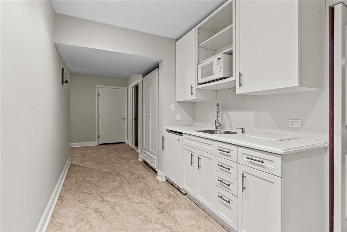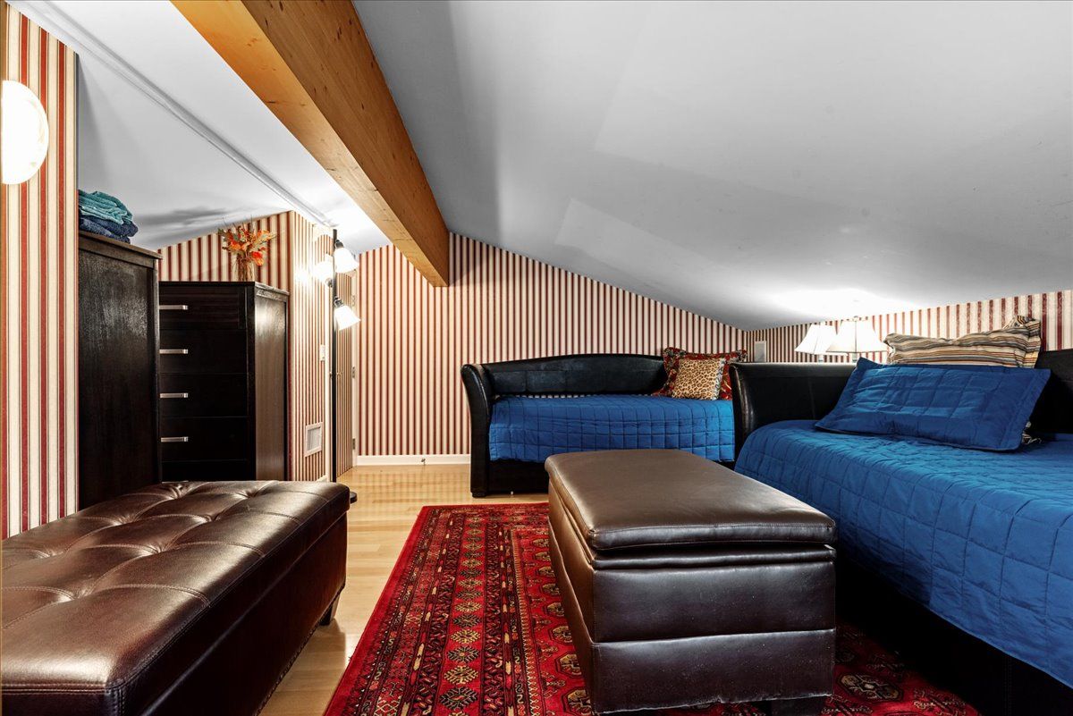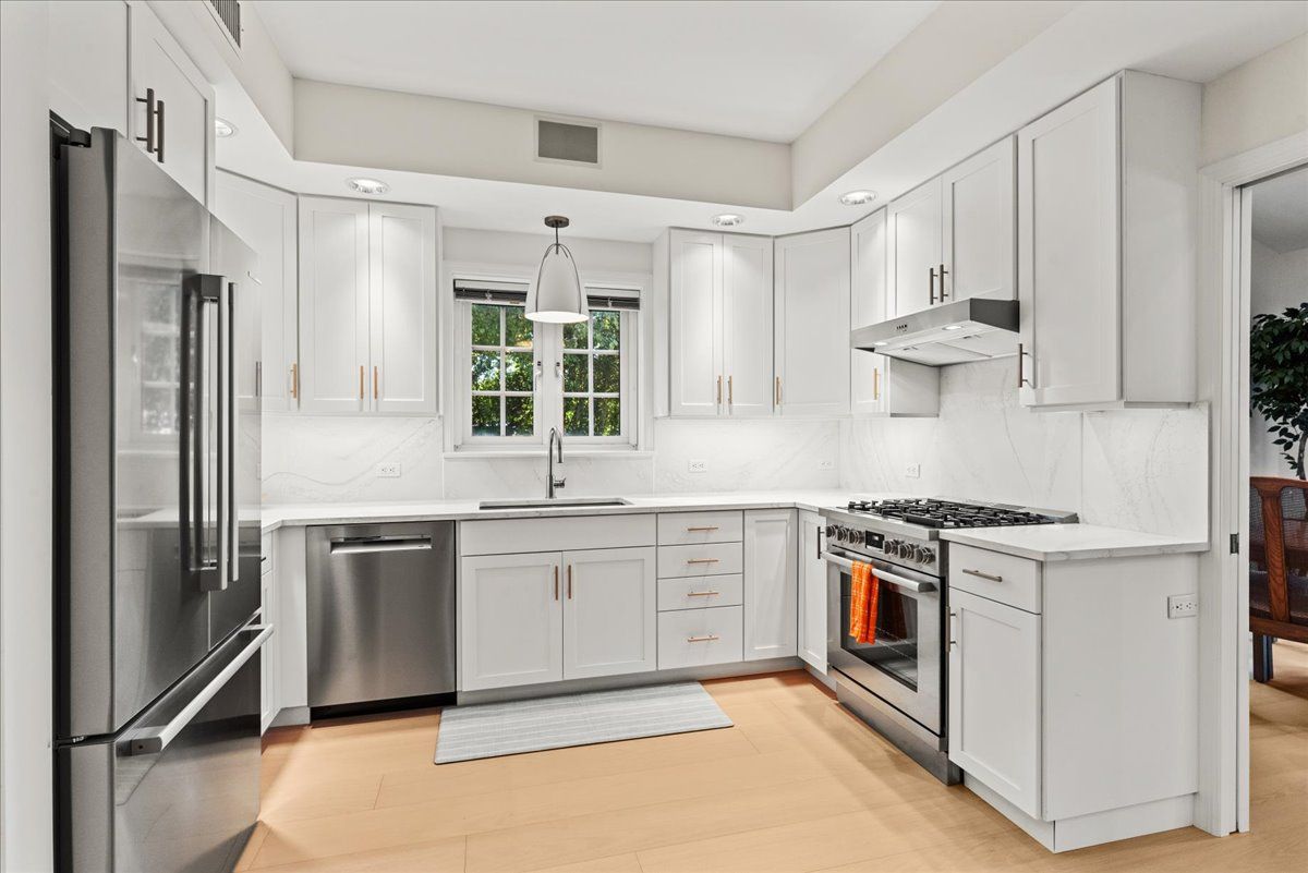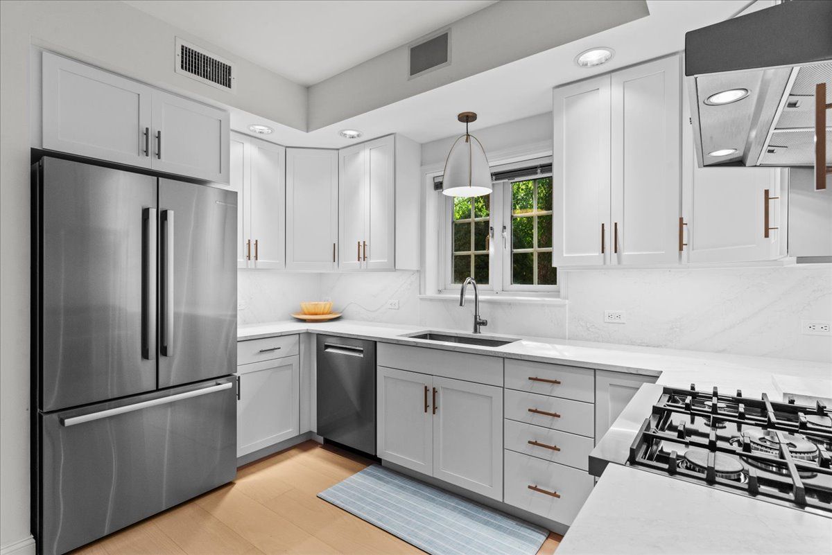 The main level features high ceilings, a living area, updated kitchen w/ a dining nook and breakfast bar, and an additional d
