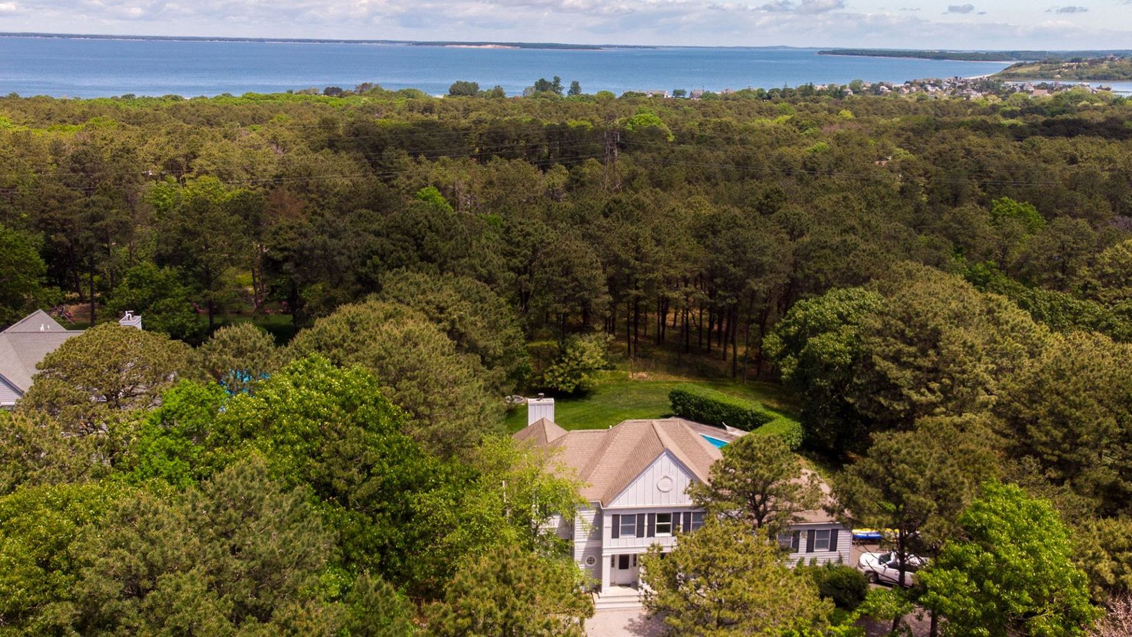 Located on a private 1.5-acre lot across from a Peconic la