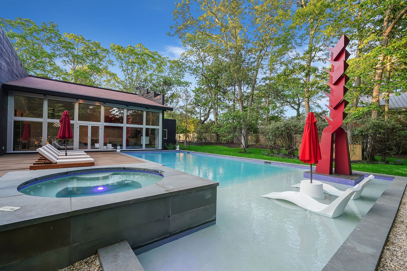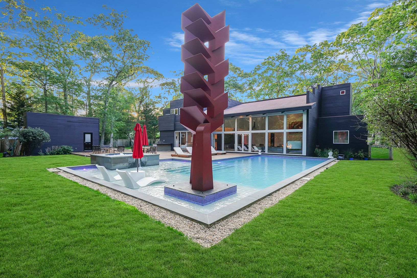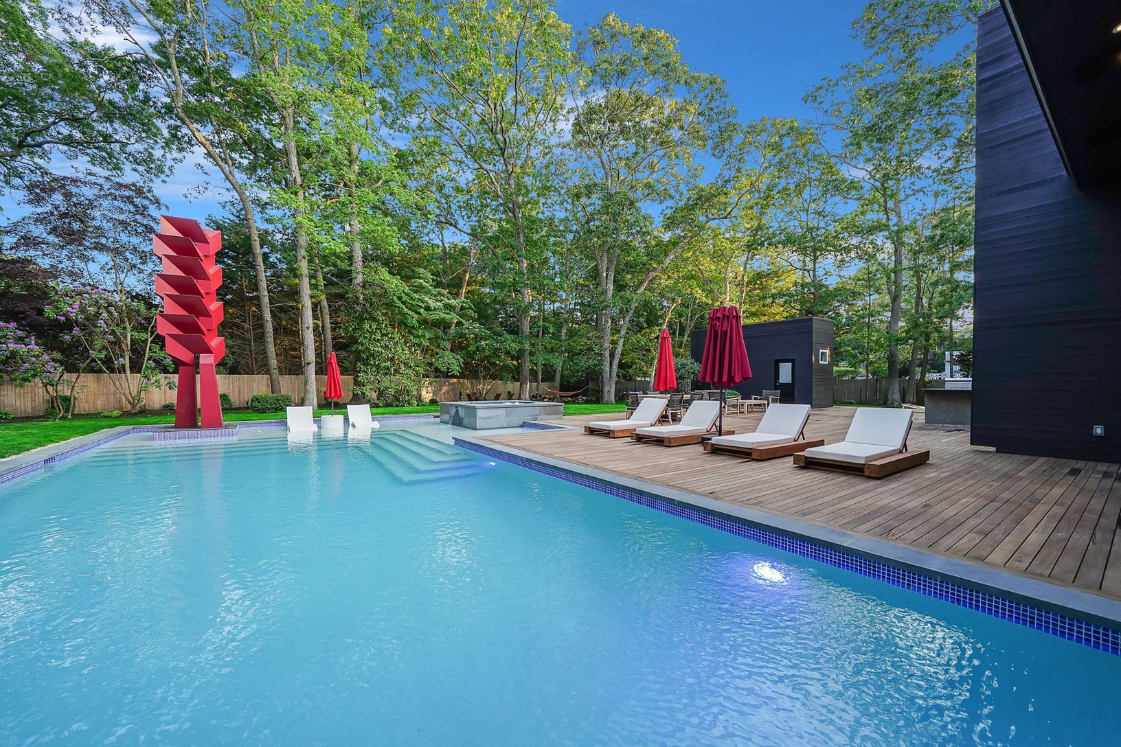 Indulge in luxurious and elegance coastal living at this stunning Art Deco home, ideally positioned in the prestigious East Hampton Village , this architectural masterpiece was crafted by renowned Hampton builder Phil Kouffman.